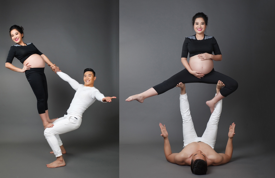 “Hoàng tử xiếc” Quốc Cơ và bà xã Hồng Phượng từng cùng nhau thực hiện bộ ảnh bầu độc đáo theo phong cách trình diễn xiếc. Tuy phụ nữ mang thai cần hạn chế vận động mạnh nhưng việc luyện tập yoga của Hồng Phượng cùng sự vững chãi của ông xã Quốc Cơ khiến hình ảnh kỷ niệm của cả hai được nhiều khán giả yêu thích.