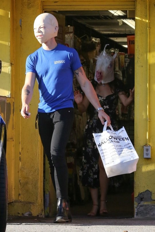 Cả hai còn mua đồ chuẩn bị cho Halloween với hai mặt nạ trên đầu cực đáng yêu