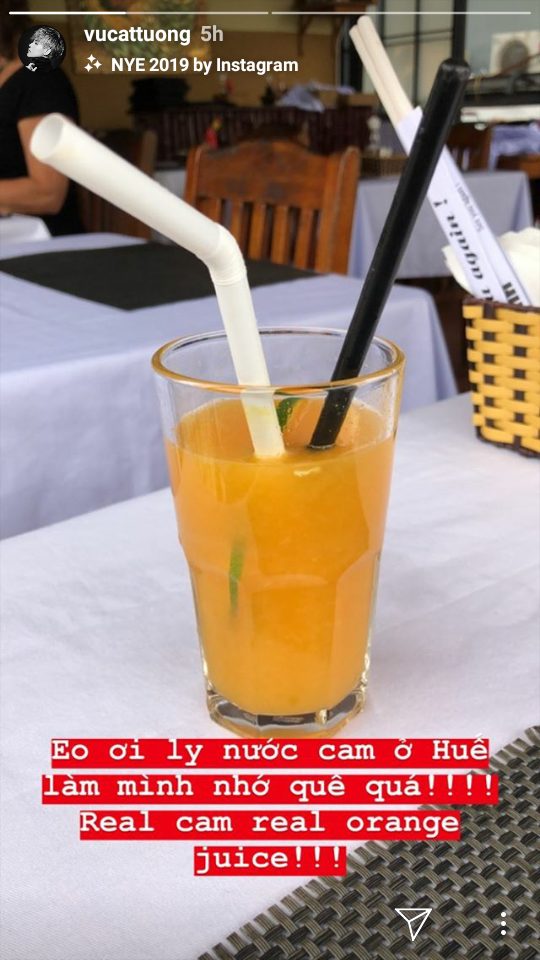 Không những vậy mà Vũ Cát Tường còn dùng tính từ cảm thán “eo ôi” treo hẳn lên caption. Nếu FM (fandom Vũ Cát Tường) đến Huế thì nên thử một ly nước cam xem rằng có gì đặc biệt và khi uống xong có nhớ về quê hương không nhé? Một sự dễ thương hết nấc xung quanh ly nước cam mà “cô Tường” được thưởng thức trên đất Huế.