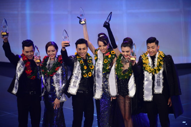 Dàn siêu mẫu 2015 với giải vàng thuộc về Mai Tuấn Anh & Dương Ngọc Khả Trang (giữa).
