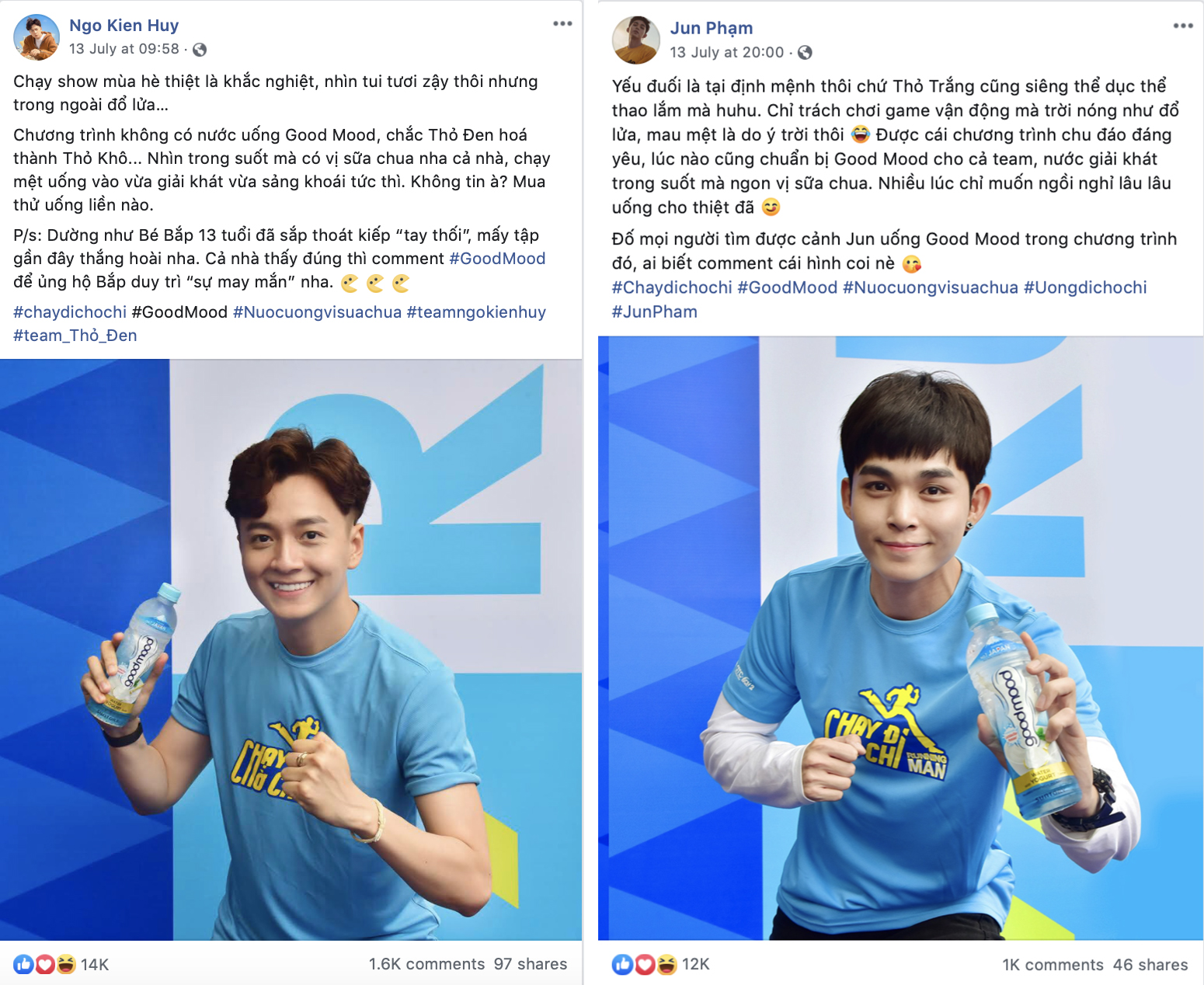 Với trải nghiệm vị giác khác lạ, nước uống có vị sữa chua Good Mood “tưởng không ngon mà ngon không tưởng”, được không chỉ dàn sao mà cả các khách mời tại “Chạy đi chờ chi” cũng mê đắm đuối. Sau khi tham gia chương trình, khách mời nào cũng đã bị dính “bùa yêu” của Good Mood và lập tức chia sẻ ngay cùng người hâm hộ trên trang cá nhân.