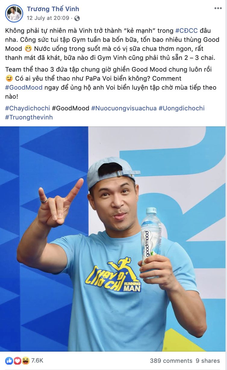 Nước uống có vị Good Mood hân hạnh là nhà tài trợ độc quyền về nước uống cho chương trình truyền hình thực tế ăn khách nhất Việt Nam hiện nay “Chạy đi chờ chi”. Không chỉ đồng hành trong các thử thách hấp dẫn, hài hước, Good Mood còn là thức uống yêu thích của các nghệ sĩ xuyên suốt quá trình ghi hình.