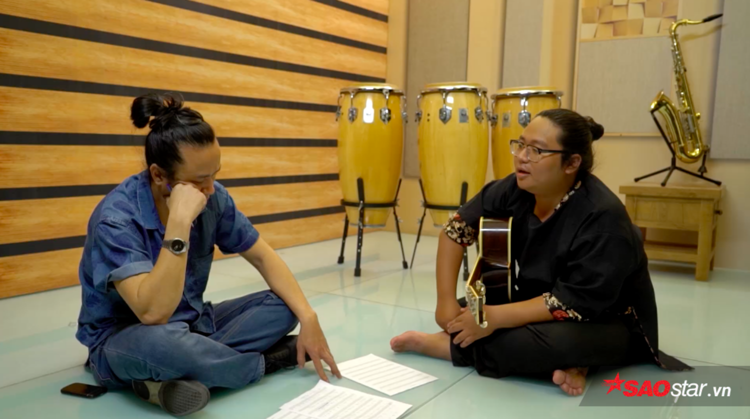 Khoảnh khắc thảo luận ý tưởng sáng tác của thầy trò HLV Lê Minh Sơn.