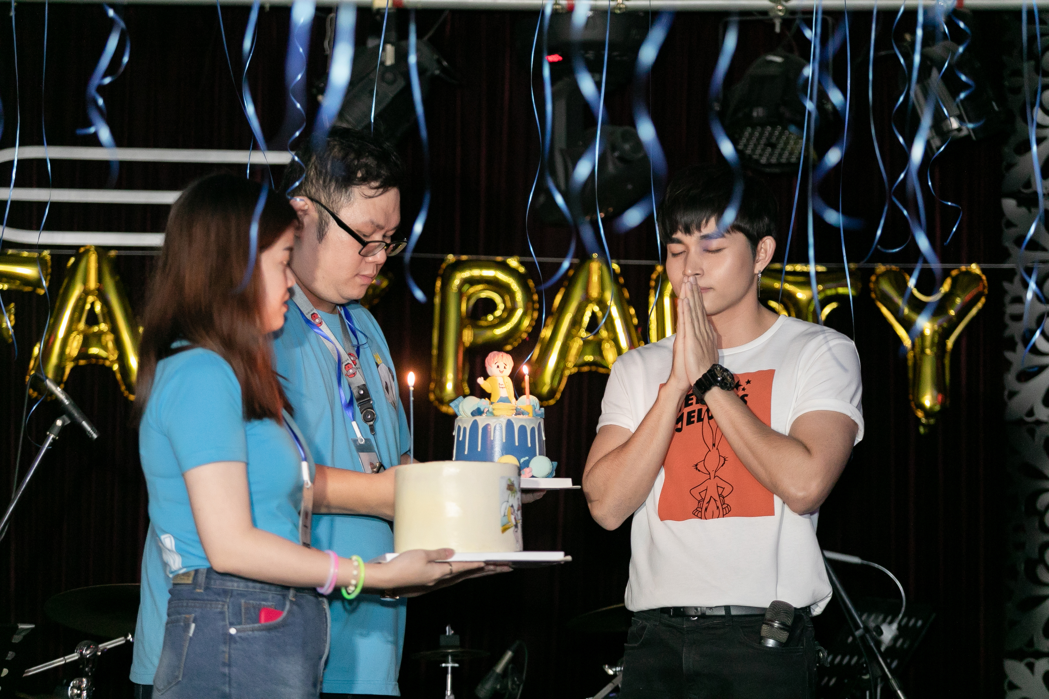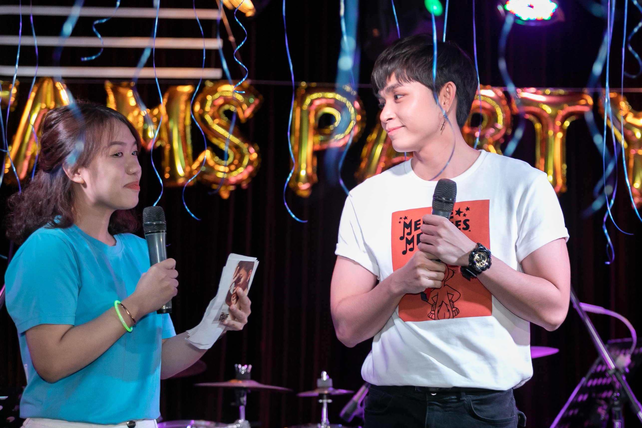 Hình ảnh của Jun Phạm trong buổi offline mừng sinh nhật do FC tổ chức.