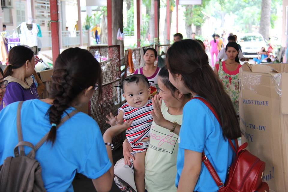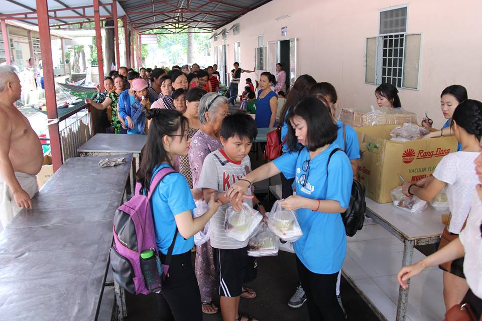 Tại TP.HCM, fan Sơn Tùng M-TP còn mặc áo màu xanh đi trao tặng 300 phần cơm trưa miễn phí cho những bệnh nhi có hoàn cảnh khó khăn tại bệnh viện Nhi Đồng 2.