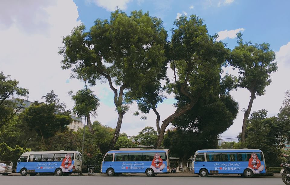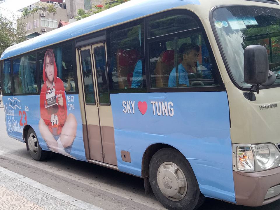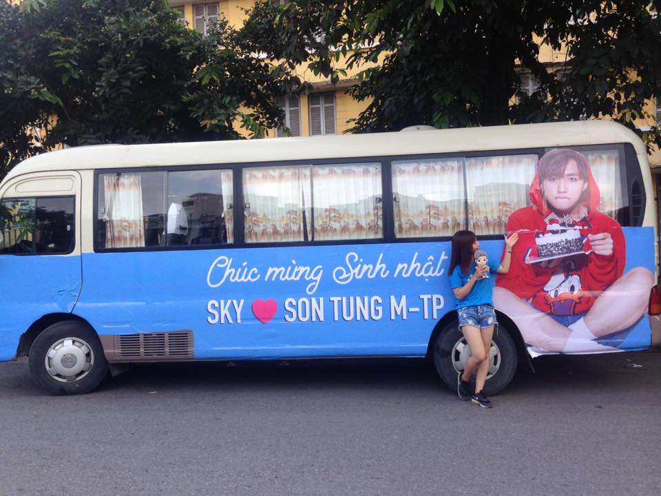 Trước đó, fan Sơn Tùng cũng thuê hẳn 2 xe bus để treo hình chúc mừng sinh nhật thần tượng.