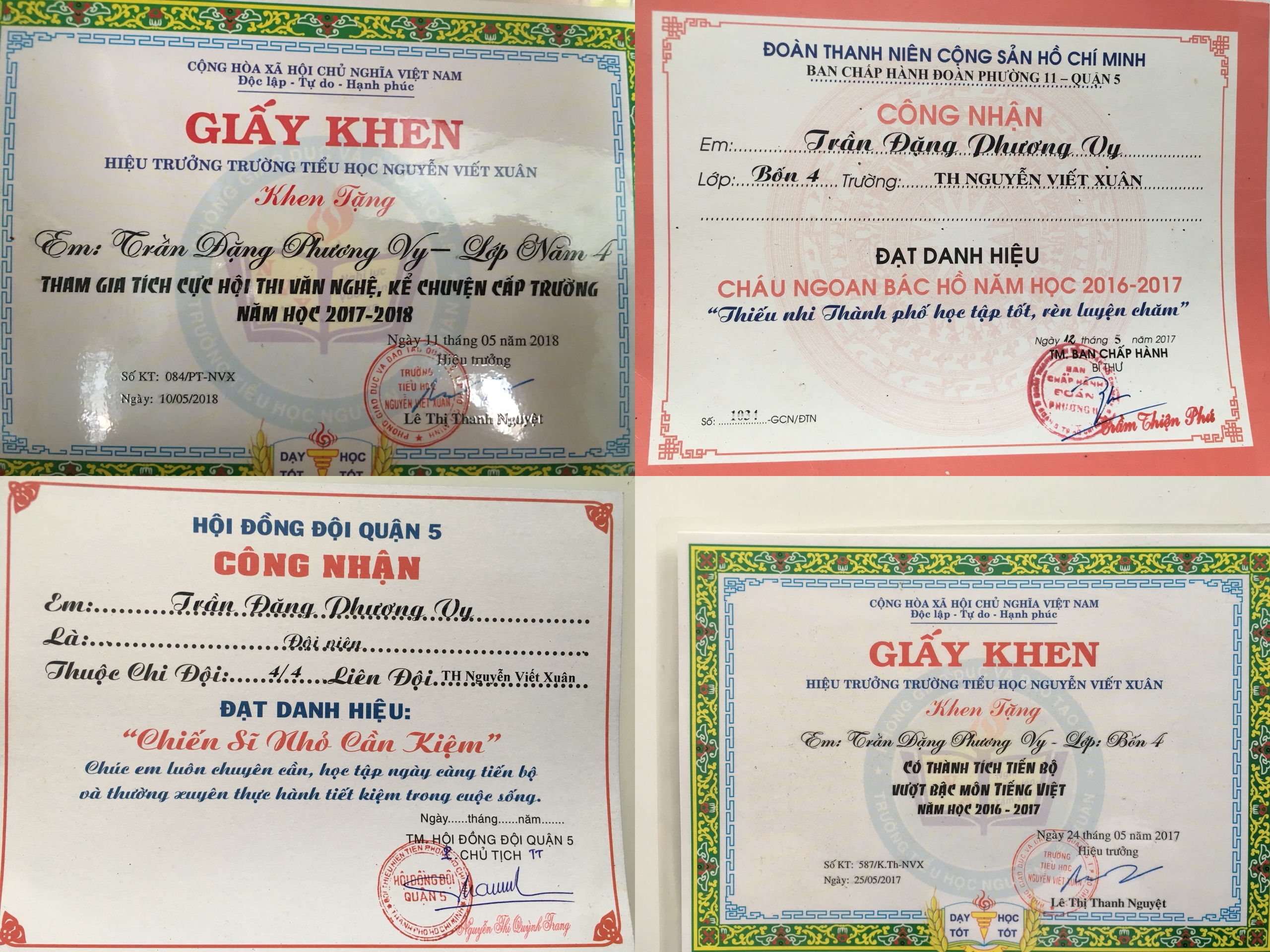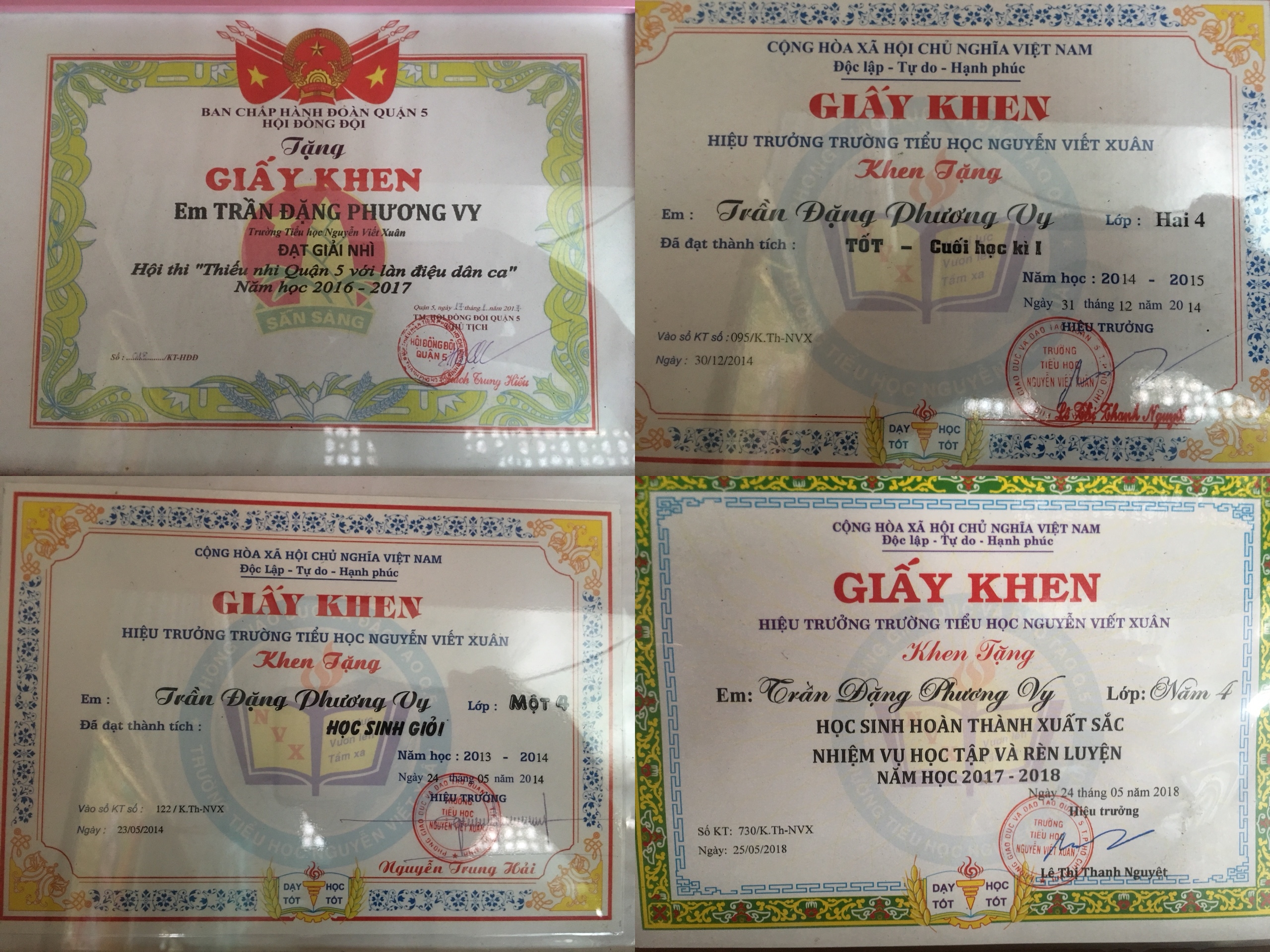 Mới 11 tuổi nhưng Phương Vy đã có kinh nghiệm tham gia rất nhiều hoạt động âm nhạc, hội diễn, cuộc thi ca ở quận và là trụ cột âm nhạc chính ở trường. Bước lên nhiều sân khấu lớn nhỏ giúp học trò Bảo Anh được sống với đam mê và bồi dưỡng cho mình thêm sự tự tin, bản lĩnh sân khấu. Phương Vy còn sở hữu gia tài bằng khen, bằng chứng nhận “đồ sộ” để làm kỷ niệm cho những lần trình diễn, dự thi ca hát đáng nhớ.