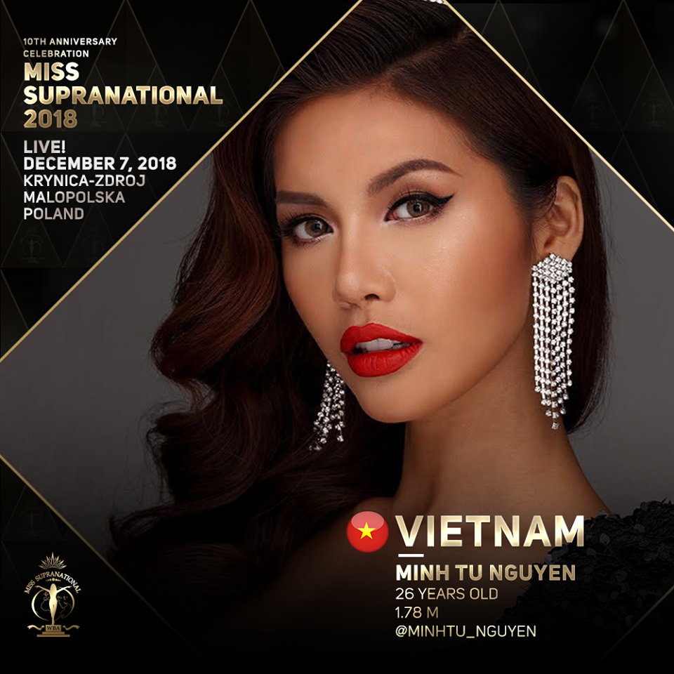 Mới đây trên trang cá nhân của mình, Minh Tú đã hé lộ đoạn clip giới thiệu khi đến với cuộc thi Miss Supratinonal 2018. Điểm đặc biệt ở đây chính là đại diện của Việt Nam tham dự đấu trường nhan sắc này chỉ nói 1 đoạn ngắn tiếng Anh và dùng tiếng mẹ đẻ để giới thiệu về bản thân mình.