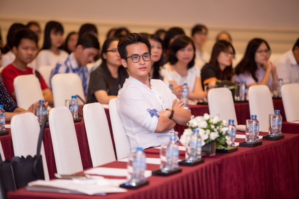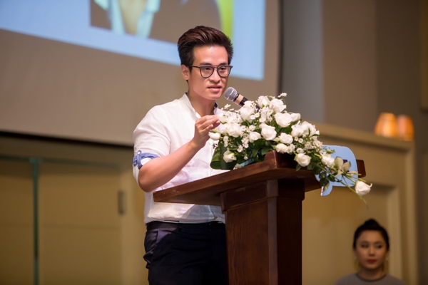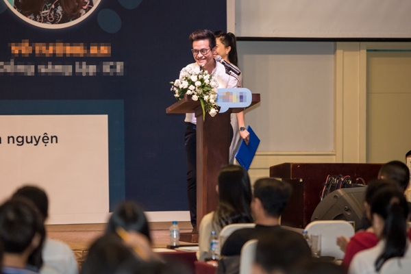 Trong phần diễn thuyết của mình, Hà Anh Tuấn có những chia sẻ thực tế với những vốn sống của mình để giúp các sinh viên.