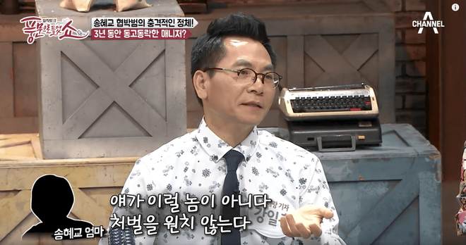 Do không tìm được việc dẫn đến nợ nần nên người quản lý này có những hành động thiếu suy nghĩ. Chính vì vậy, mẹ của Song Hye Kyo quyết định không làm lớn chuyện và cho anh ta con đường trở thành người lương thiện.