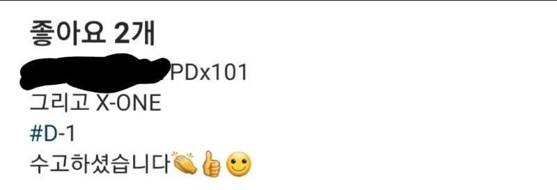 Trong một bài đăng trên SNS, người này tiết lộ: “PDx101 và X-ONE. # D-1. Tất cả các bạn đã làm rất tốt rồi”. Theo đó, nhiều cư dân mạng và khán giả nghi ngờ rằng X-ONE được đề cập trong bài đăng, thực tế là tên nhóm được chọn để đại diện cho những người chiến thắng của chương trình Produce X 101.