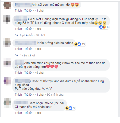 Một số bình luận siêu lầy của fan khi bắt gặp hình ảnh siêu đáng yêu với “cằm nhọn, môi đỏ, tóc dài” của giọng ca Chạy ngay đi.