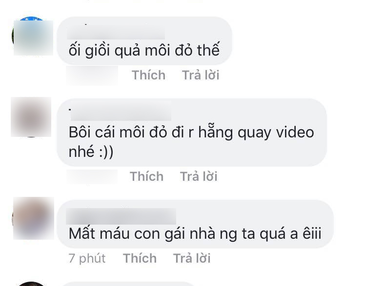 … và chỉ chú ý đến đôi môi đỏ mọng của thần tượng. Có bạn hài hước chia sẻ nam ca sĩ hãy bôi đôi môi đỏ rồi hẳn quay video.