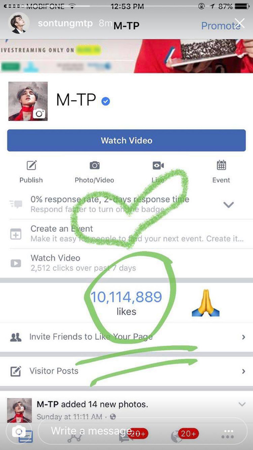 Sơn Tùng M-TP hạnh phúc khoe fanpage vượt mốc 10 triệu người theo dõi.