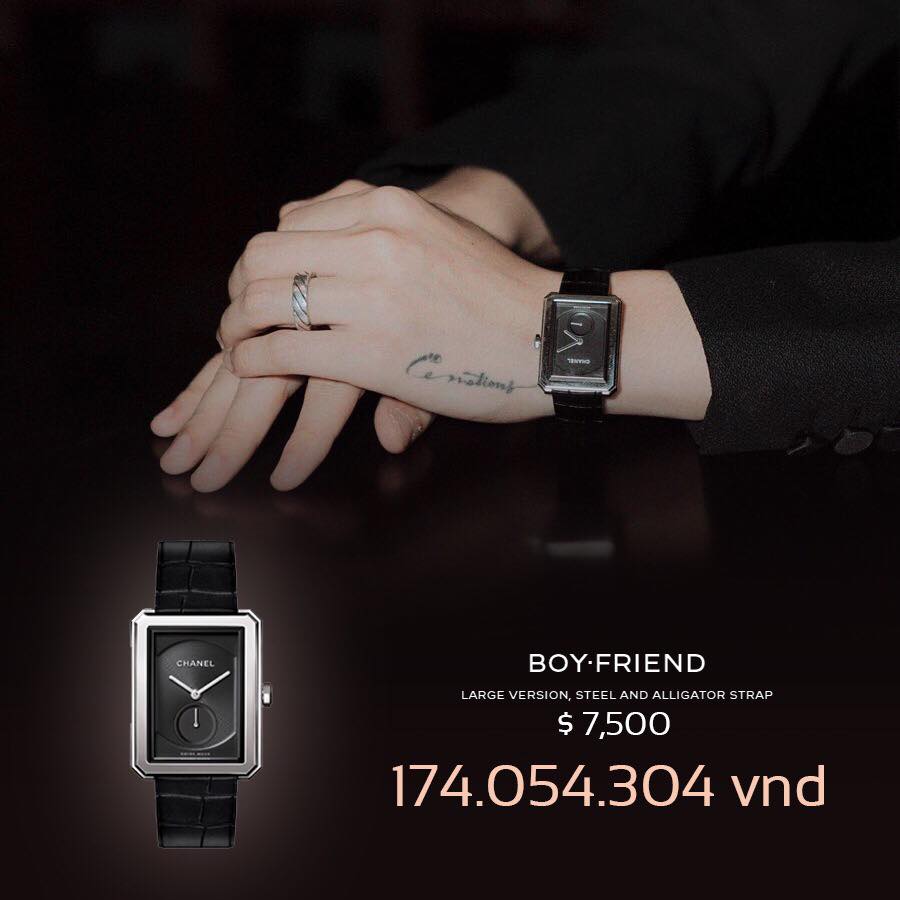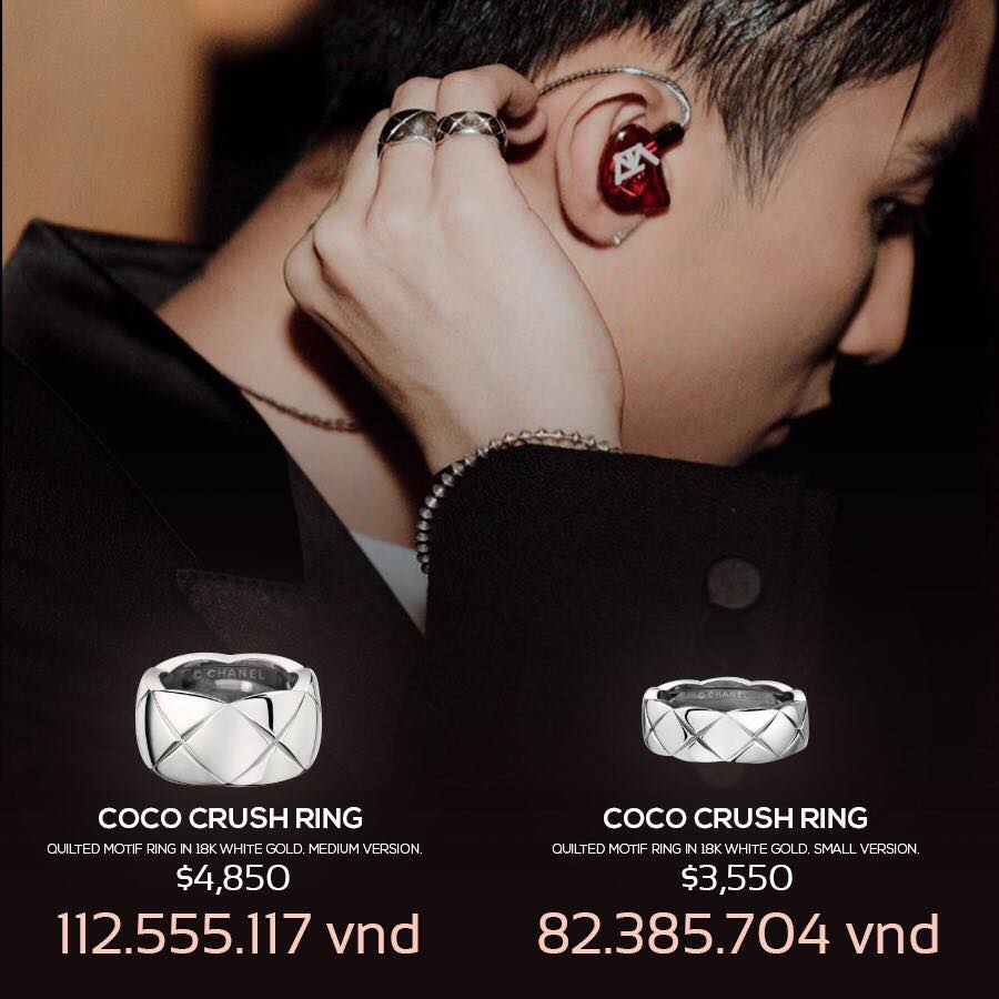 Theo đó 2 chiếc nhẫn được giọng ca Chạy ngay đi đeo trên tay lần lượt có giá là hơn 112 triệu đồng và 82 triệu đồng. Một chiếc đồng hồ của nhãn hiệu Boyfriend có giá 174 triệu đồng.