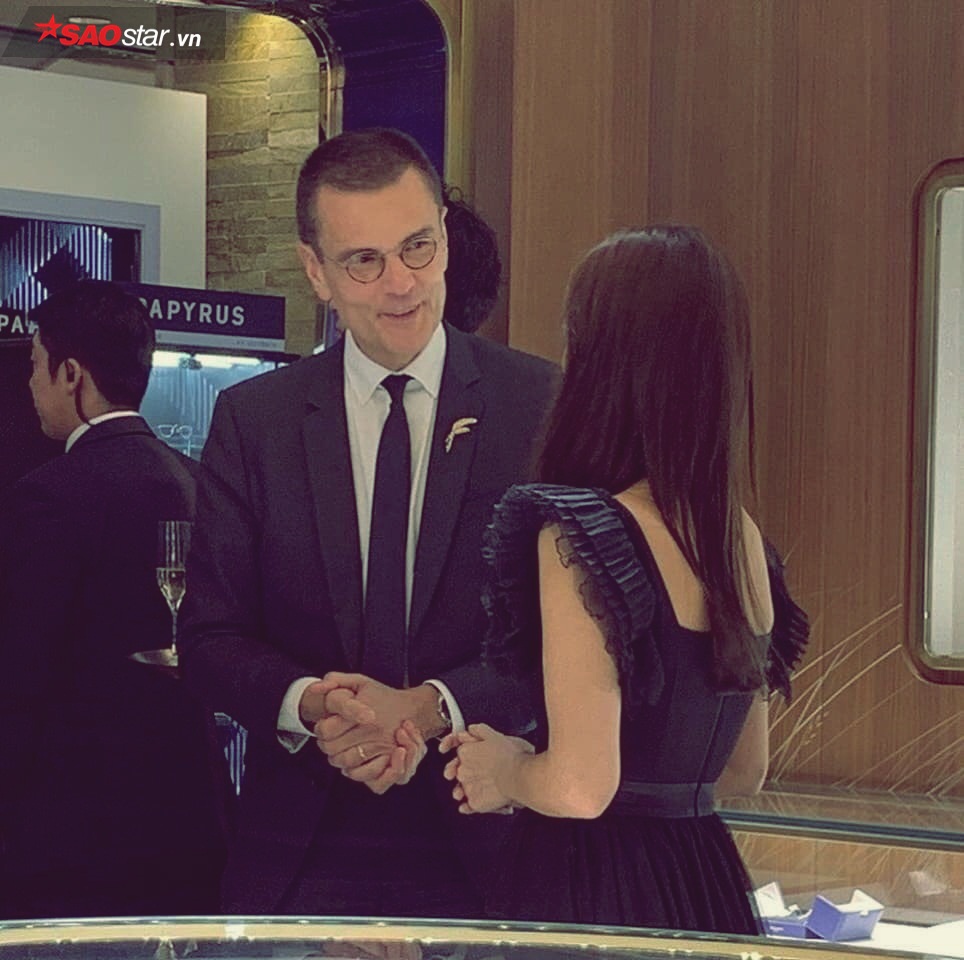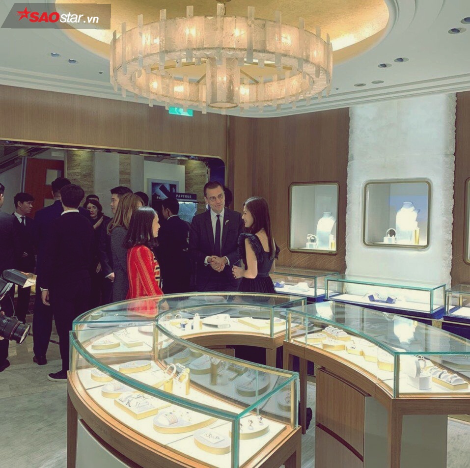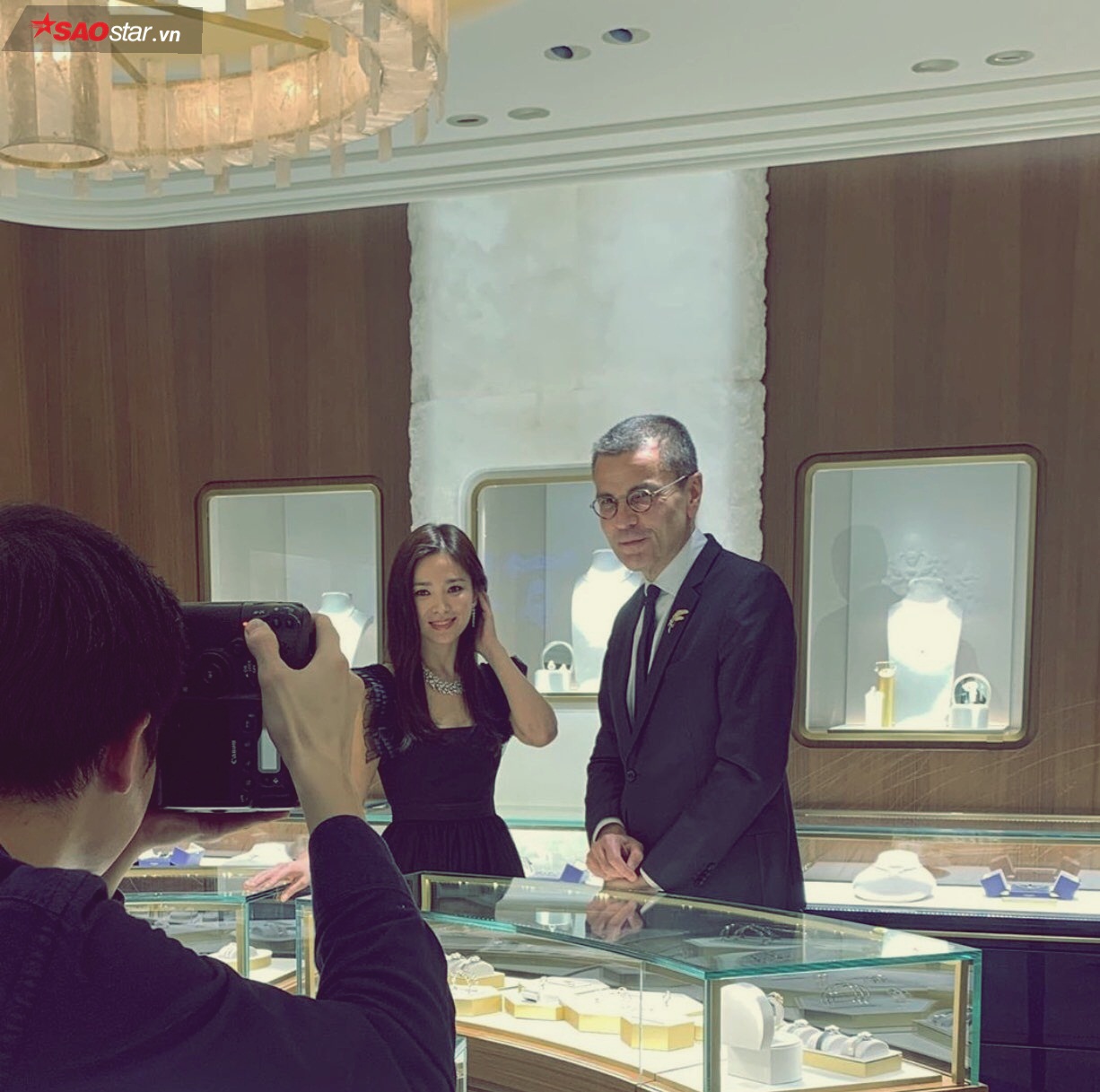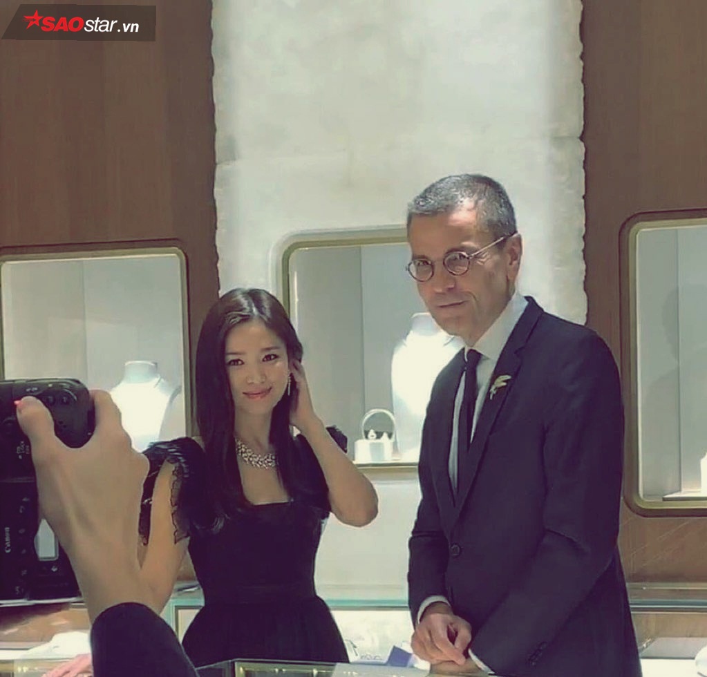 Nữ diễn viên xuất hiện giản dị nhưng không kém phần xinh đẹp khi lựa chọn cho mình một chiếc váy màu đen, đi kèm với đó là những trang sức được thiết kế tinh tế của thương hiệu Chaumet.