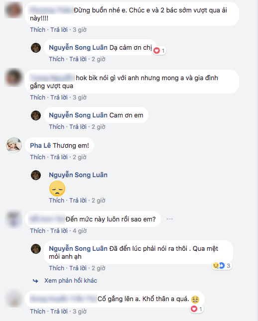 Cư dân mạng vào động viên Song Luân vượt qua giai đoạn khó khăn này.