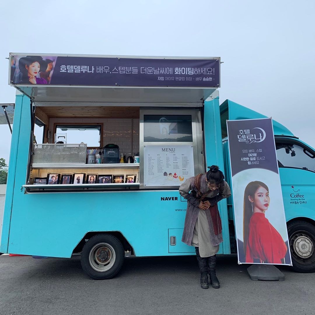 Nam diễn viên Song Seung Hun gần đây đã gửi tặng IU một món quà bất ngờ và tự gọi mình là trưởng FC hâm mộ IU.Ngày 24/7, IU đã chia sẻ trên Instagram của mình lời cám ơn đến diễn viên Song Seung Hun vì chiếc xe cà phê mà anh đã gửi đến tặng cô và nhân viên trong đoàn làm phim Hotel del Luna.
