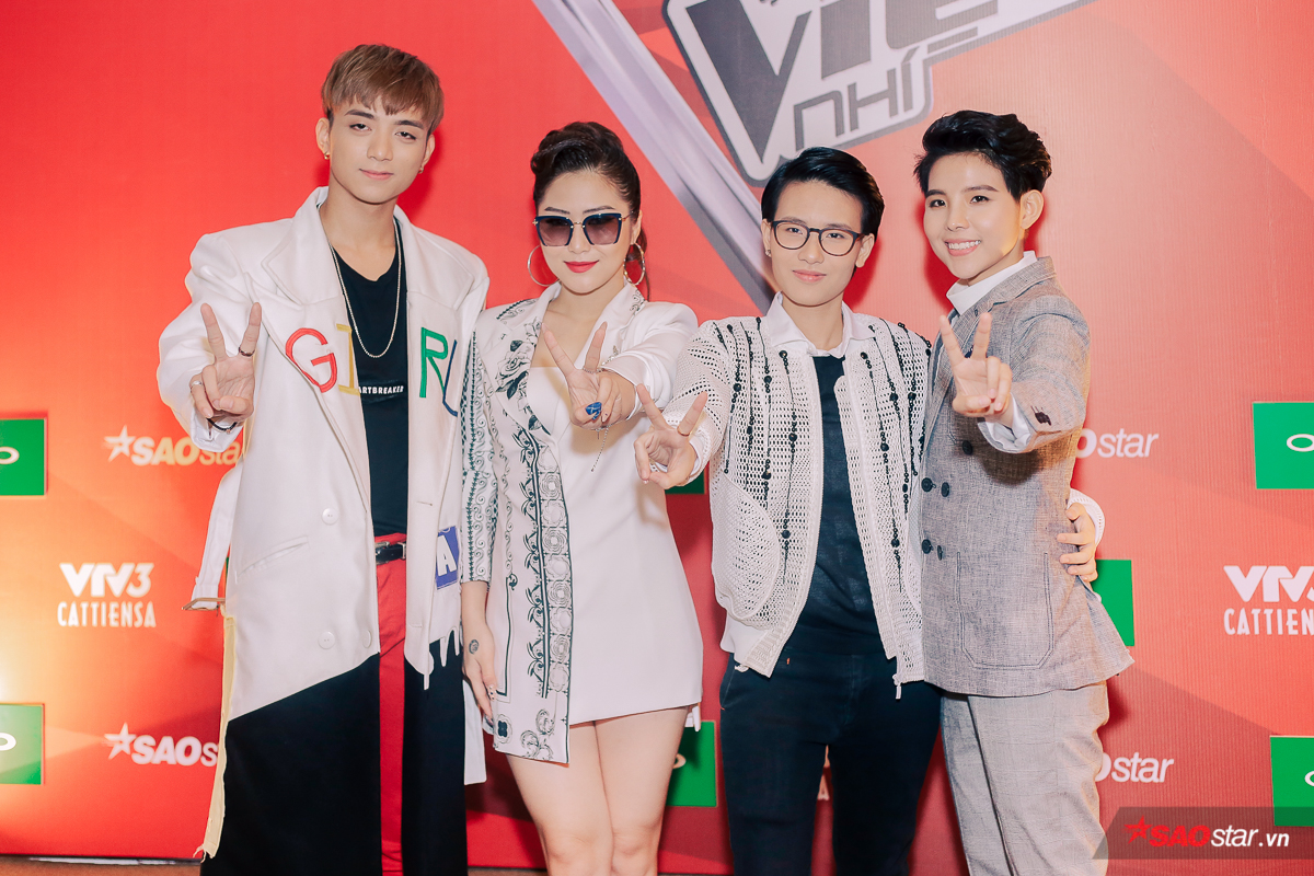Soobin Hoàng Sơn xuất hiện tại buổi họp báo Giọng hát Việt nhí 2017 cùng với Hương Tràm - Tiên Cookie và Vũ Cát Tường.