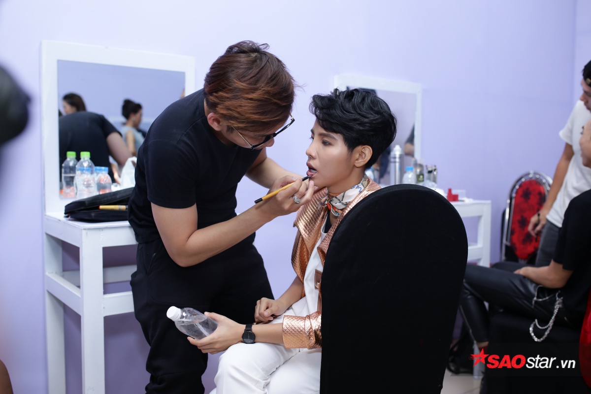 HLV Vũ Cát Tường chỉn chu ngoại hình trước khi bước ra sân khấu.