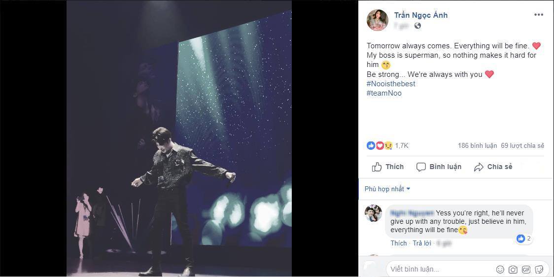 Anh chia sẻ: “Stay strong Coach. We love you!” để thể hiện tình cảm dành cho HLV Noo Phước Thịnh.