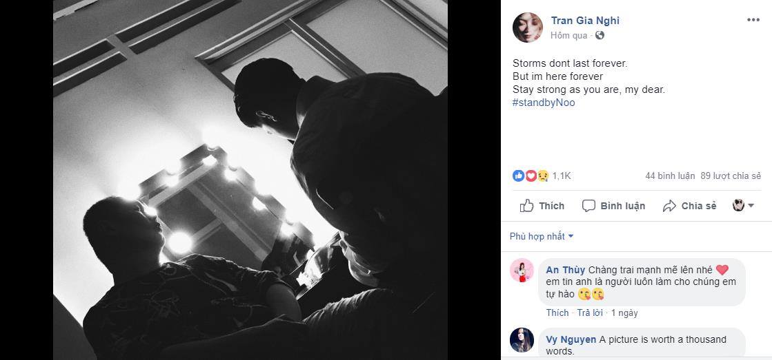 “Storms dont last forever. But im here forever. Stay strong as you are, my dear.” là những điều mà Gia Nghi muốn dành cho HLV của mình giữa “tâm bão”.