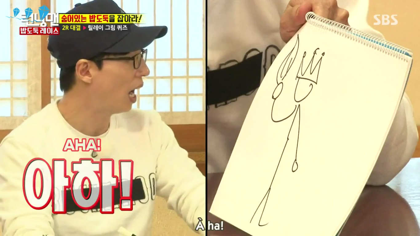 Với vai trò trung tâm dẫn dắt không khí vui vẻ tại Running Man, MC quốc dân Yoo Jae Suk luôn hoàn hảo từ ngoại hình đến cả năng lực. Đặc biệt, sự thông minh và sức khỏe dẻo dai cơ bắp đầy đặn luôn giúp bác Châu Chấu vượt qua các thử thánh một cách tốt nhất. Tuy nhiên, mỗi khi thử thách hội họa xuất hiện thì các thành viên Running Man lại bò lăn cười ra nước mắt vì tài vẽ tranh quá ư là trừu tượng của thánh Yoo.