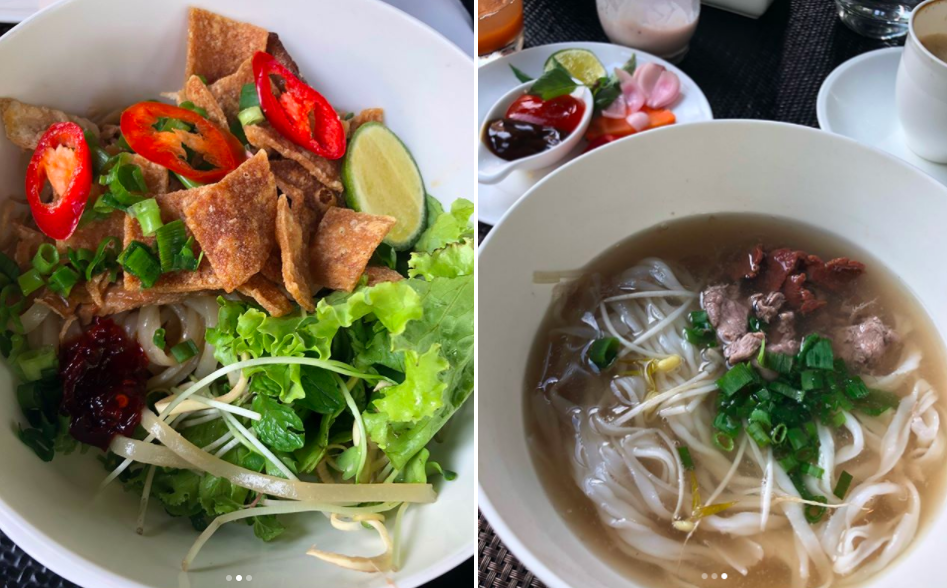 Bữa sáng gồm phở và mì quảng của cặp đôi.
