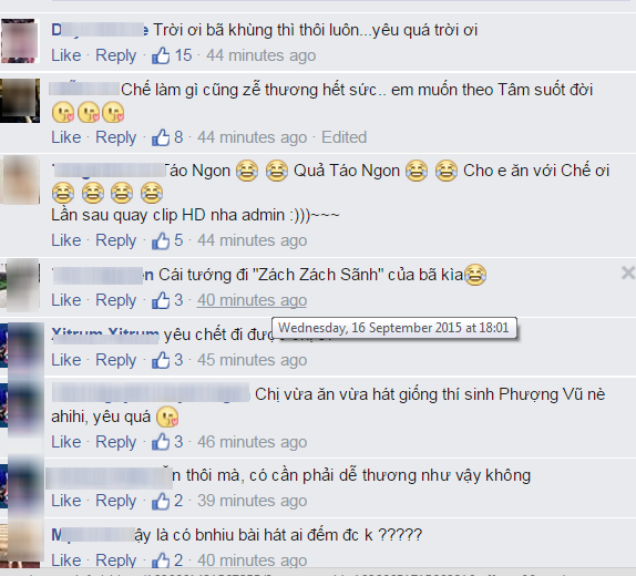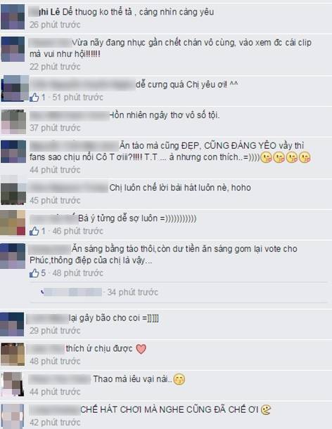 Ngay sau khi chia sẻ, đoạn clip này đã nhận được hàng ngàn lượt like và vô số bình luận dành cho sự đáng yêu của nữ ca sĩ, chẳng hạn như: “Trời ơi chị ấy làm gì cũng dễ thương”, hay “Chỉ là ăn táo thôi, có cần phải dễ thương như vậy không”… Thậm chí, một số bạn còn hài hước hỏi về trái táo Mỹ Tâm ăn mua ở đâu.