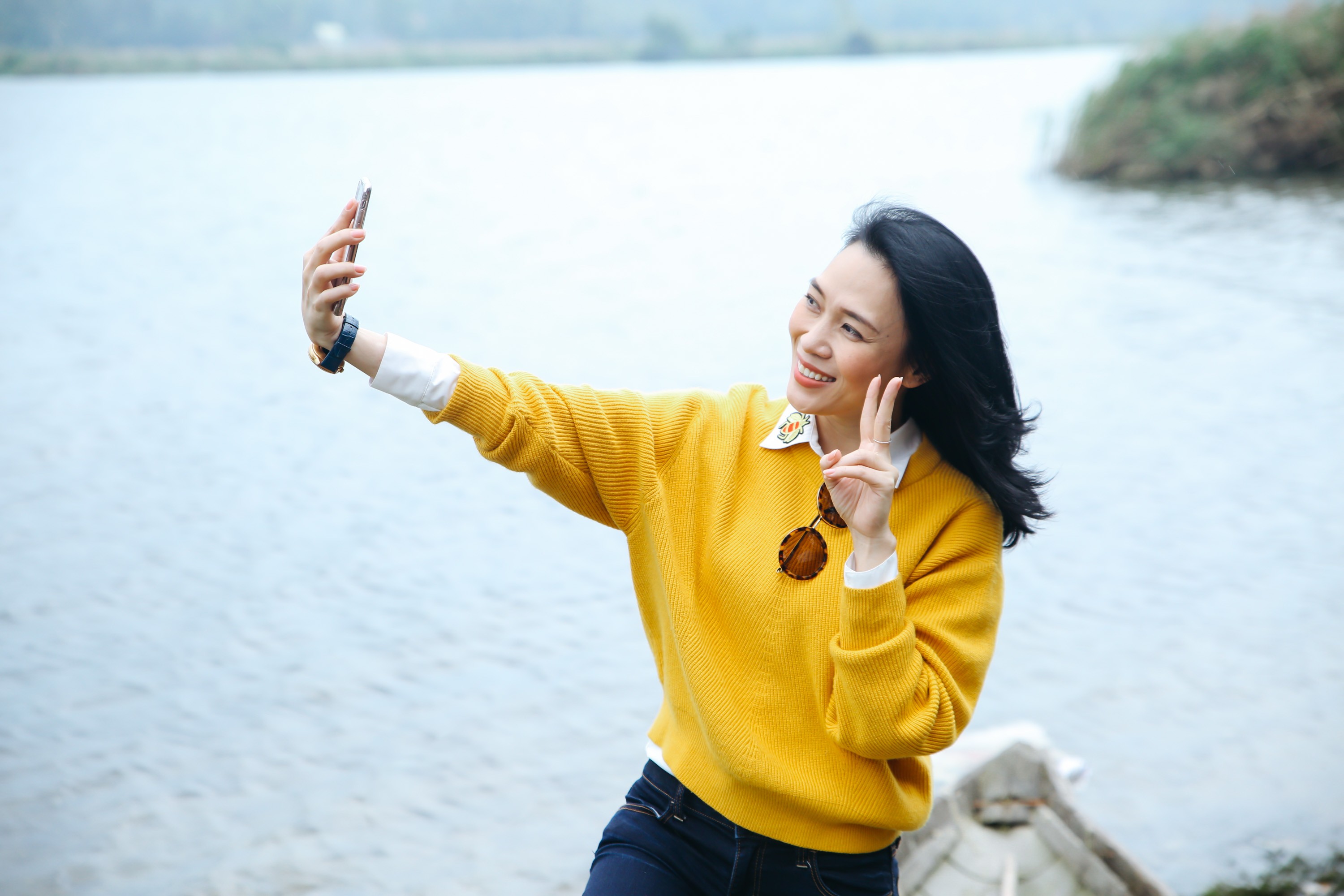 Sau đó, Họa mi tóc nâu chụp ảnh lưu niệm ngay tại bờ sông quen thuộc.