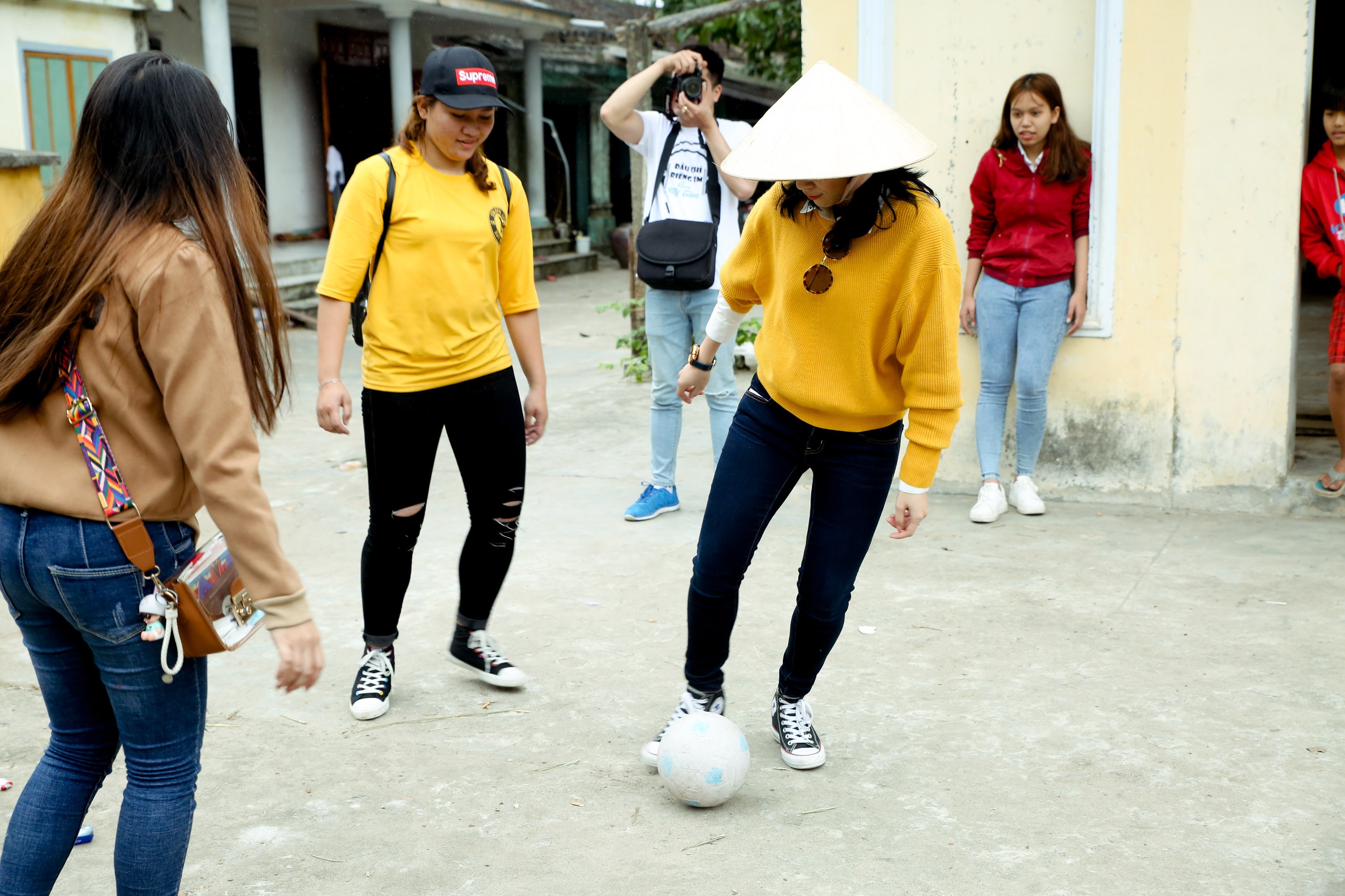 Đặc biệt, nữ ca sĩ còn trổ tài đá bóng cùng với fan.