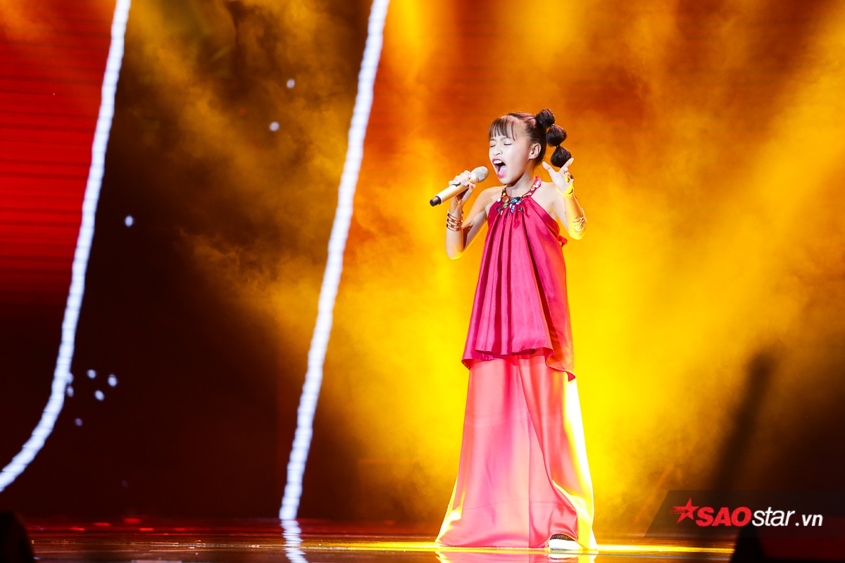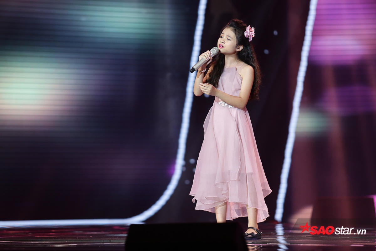 Cuối cùng là cô bé Minh Thư. Đây quả thực là một Hương Tràm phiên bản nhí khi tiếp tục cover Với em là mãi mãi bằng lời mới - Với con ba là mãi mãi. Đêm thi này, Minh Thư xuất hiện với hình ảnh như một nàng công chúa hát một ca khúc đầy tình cảm.