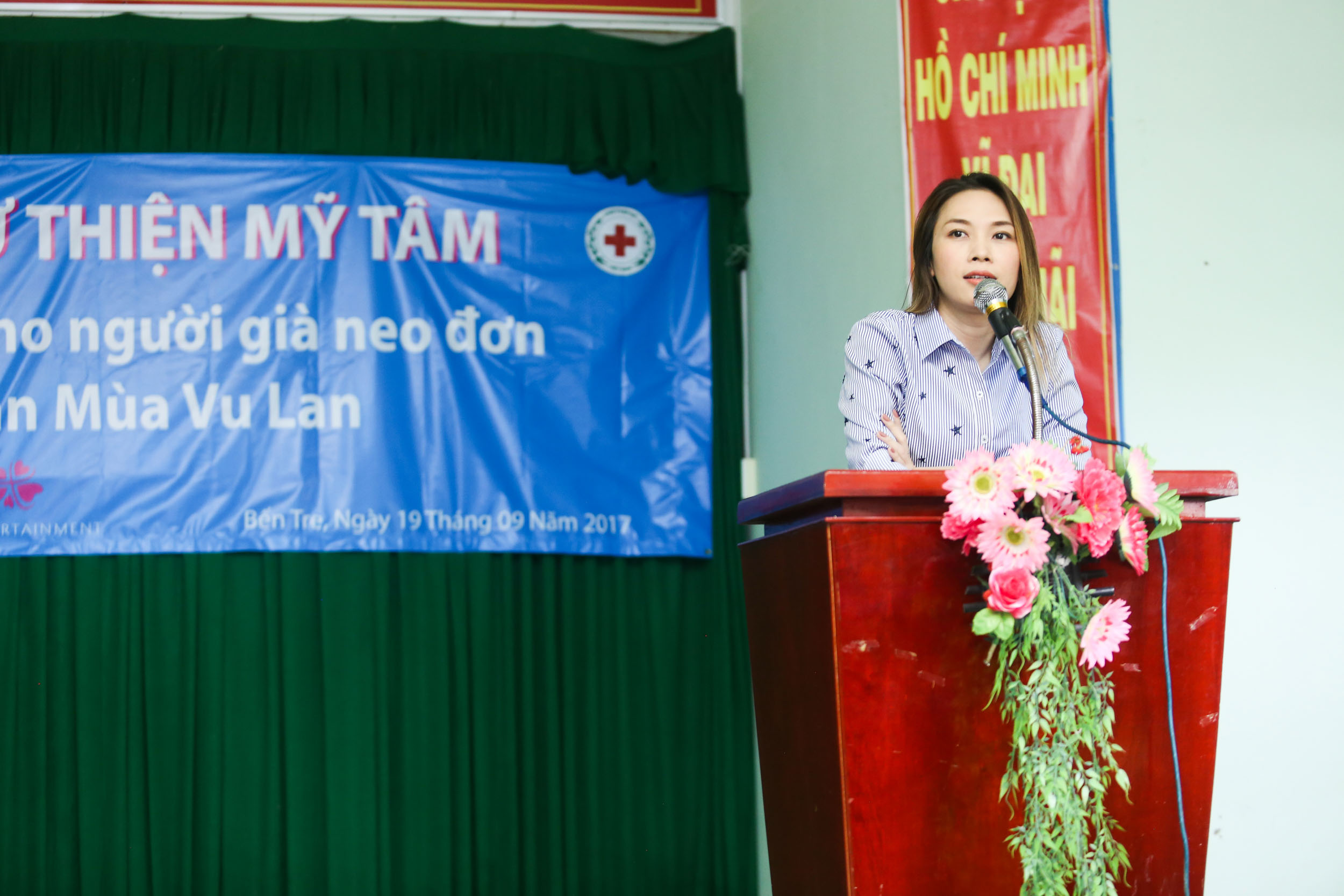 Chiều 19/9, Mỹ Tâm có mặt tại Bến Tre để tặng quà cho người già neo đơn nhân mùa Vu Lan báo hiếu. Đi cùng cô là các thành viên trong ê-kíp cùng những tình nguyện viên của quỹ từ thiện Mỹ Tâm do cô sáng lập.