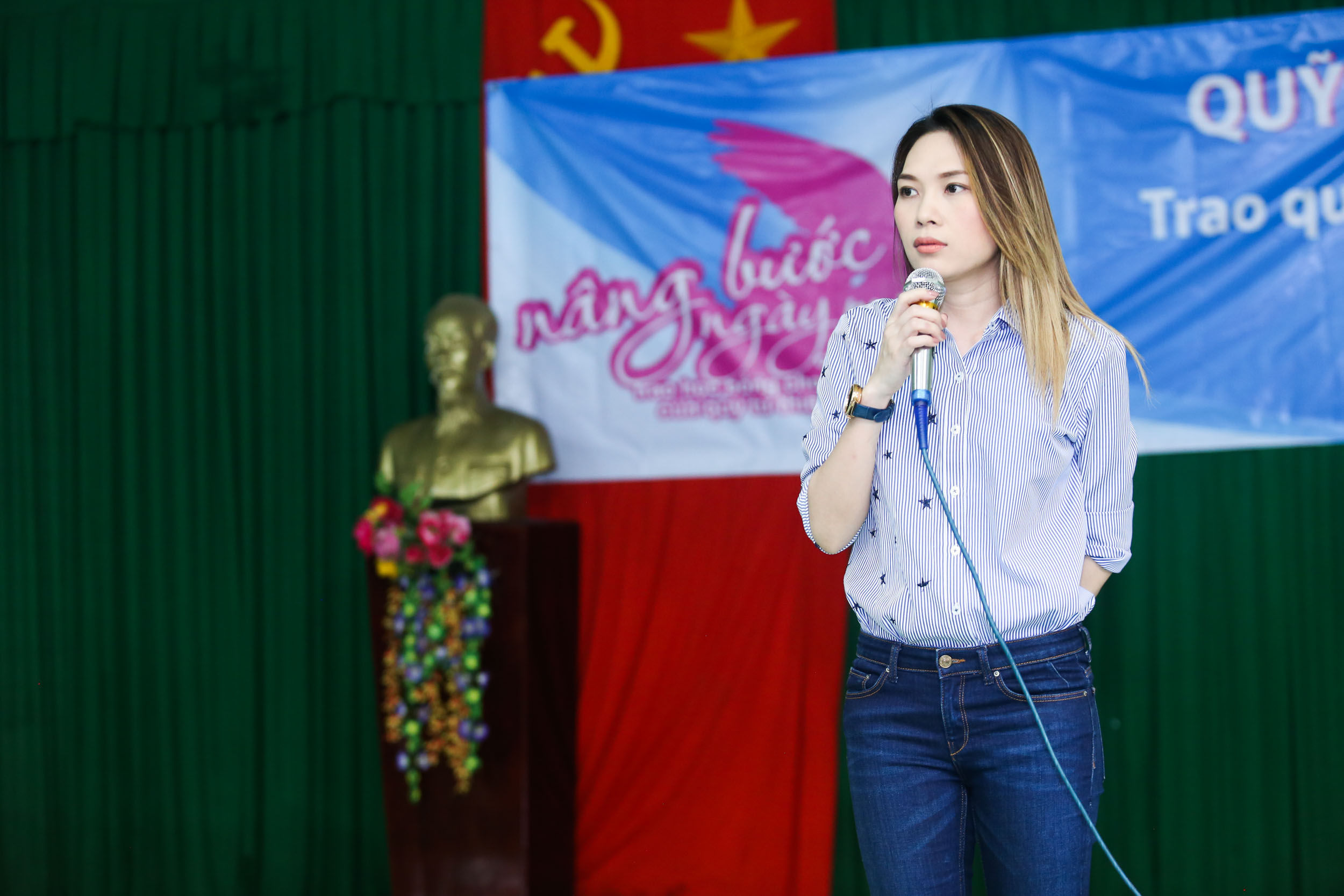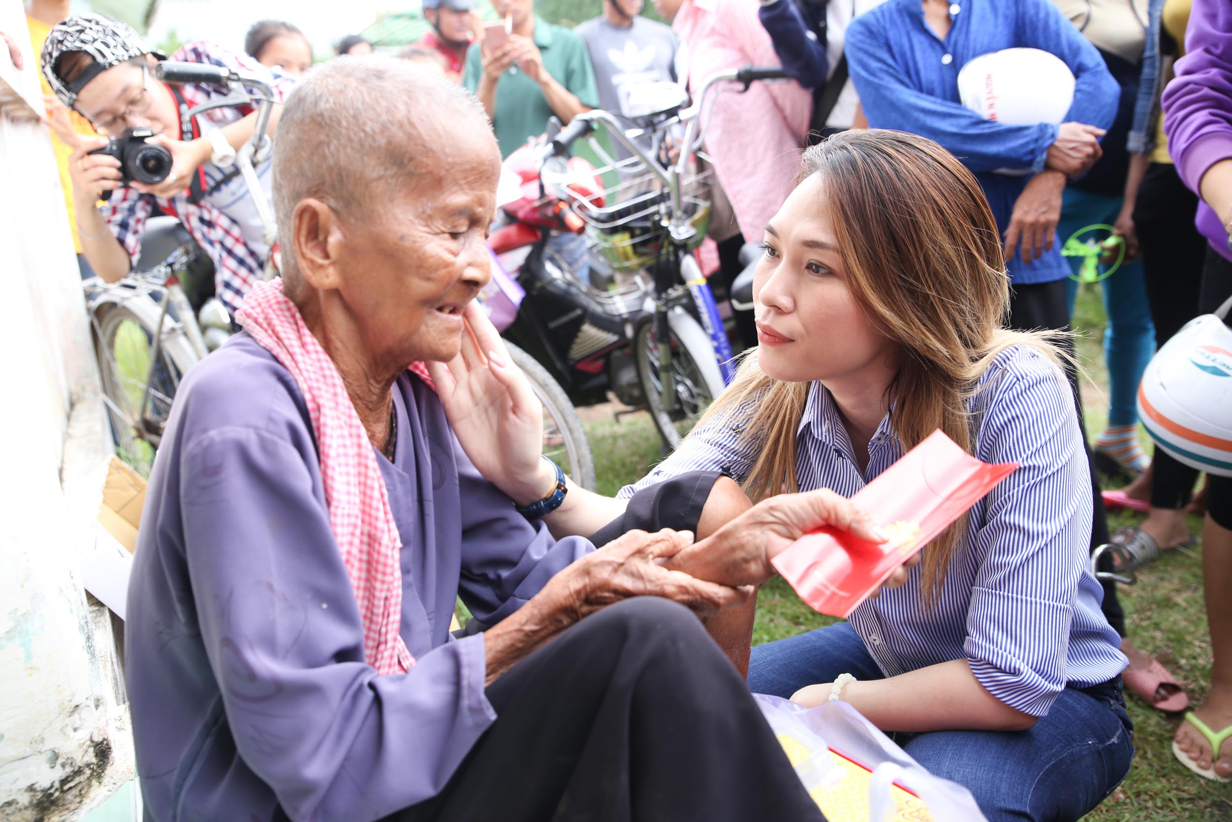 Mỹ Tâm tận tay trao tặng từng phần quà đến bà con có hoàn cảnh khó khăn.