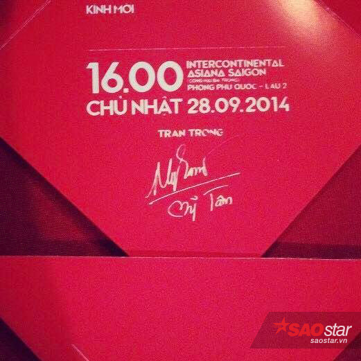 Các fan xôn xao tấm thiệp cưới cho là của Mỹ Tâm.