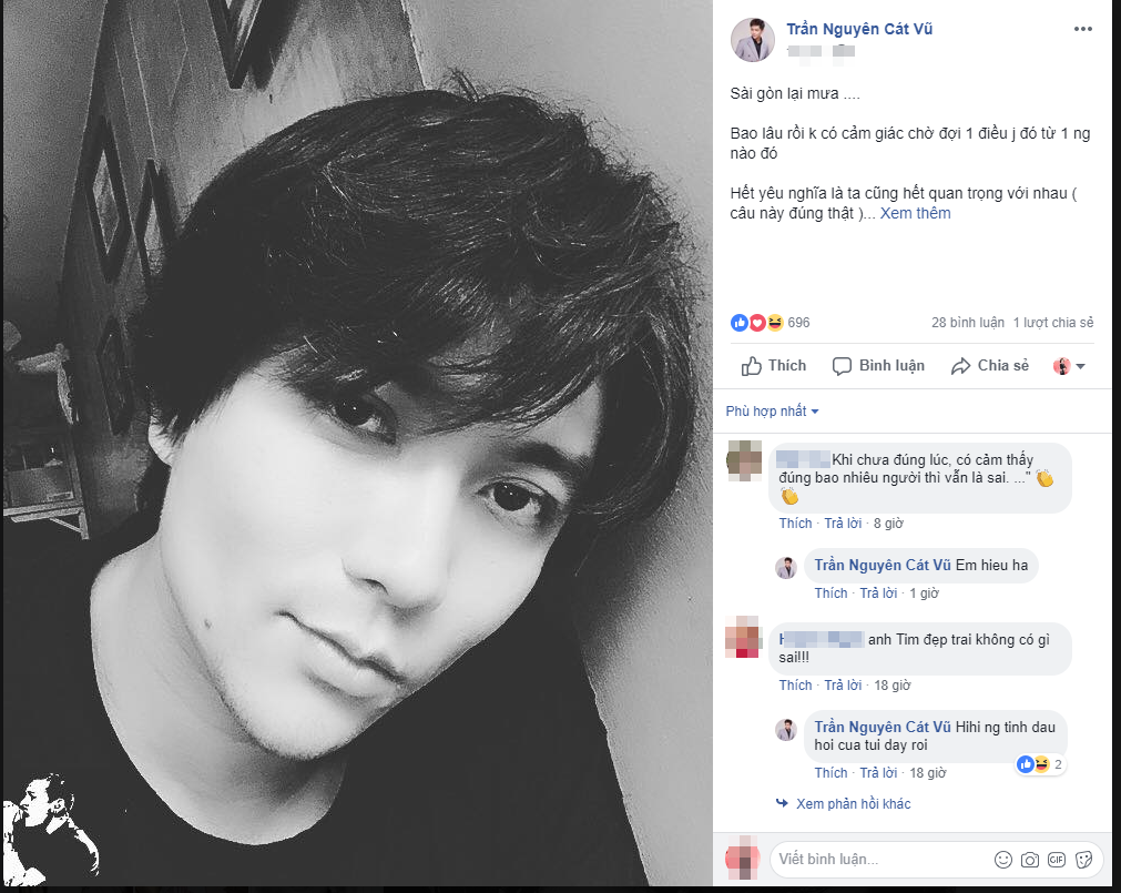 Đây có lẽ là lần đầu tiên sau khi xác nhận đã ly hôn, Tim chia sẻ dòng trạng thái tâm trạng. Khi bạn bè của nam ca sĩ bình luận rằng “tâm trạng dữ” thì Tim trả lời rằng “Người lớn cô đơn”.