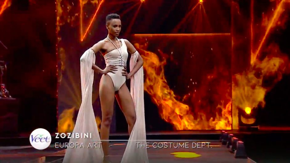 Với là da nâu khoẻ khoắn và hình thể săn chắc, Zozibini Tunzi làm chủ sân khấu và chinh phục được BGK và khán giả bởi kĩ năng trình diễn catwalk tự tin và thần thái gương mặt thu hút. Bên cạnh đó, lợi thế của Tân hoa hậu Nam phi còn là những tạo dáng ấn tượng vô cùng quyến rũ trên sân khấu.