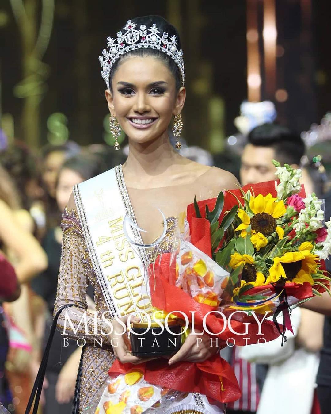 Không quá thu hút sự chú ý của cộng đồng fan sắc đẹp quốc tế nhưng Miss Global vẫn thể hiện sự đầu tư khi chuẩn bị hẳn 5 chiếc vương miện cho tân hoa hậu và 4 á hậu. Tuy vậy, dường như vương miện của cuộc thi Hoa hậu Toàn cầu quá rộng so với á hậu 4 người Mỹ Pamela Lee Urbina.