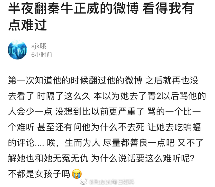 Bài đăng trên Douban của 1 tài khoản bày tỏ về sự đau buồn khi Tầm Ngưu Chính Uy vẫn liên tục bị “ăn” chửi kể từ sau khi sự việc cô nàng đăng ký tham gia Thanh xuân có bạn 2: