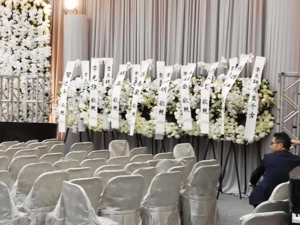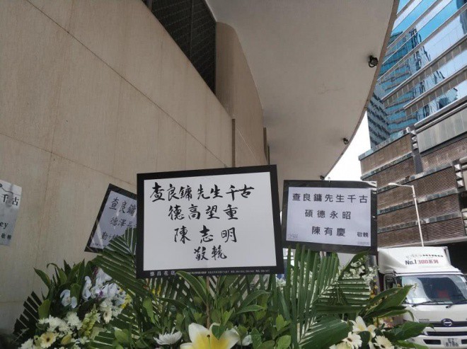 Vô vàn vòng hoa trắng gửi tới đám tang của cố nhà văn Kim Dung.