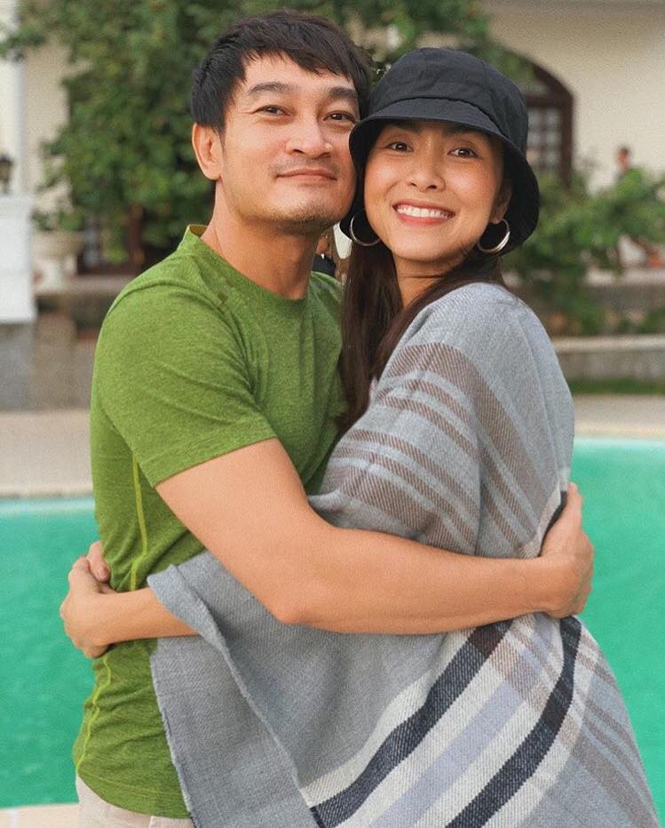Tăng Thanh Hà và Trương Minh Quốc Thái thân thiết ôm nhau.