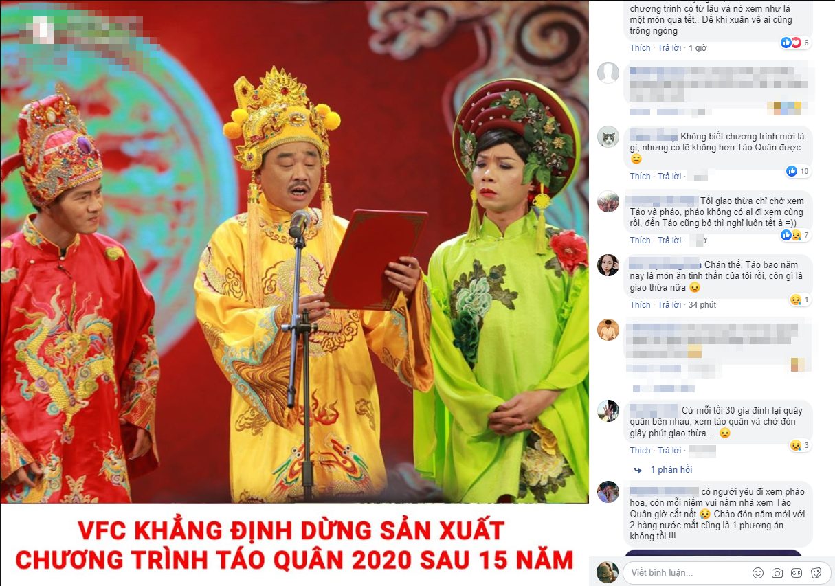 Theo thông tin từ VTV, Đài truyền hình Việt Nam đã quyết định không sản xuất Táo Quân 2020. Vậy là sau 16 năm lên sóng, trở thành món ăn tinh thần không thể thiếu của người dân Việt Nam ở đêm 30 Tết đã không còn nữa, thay vào đó là một chương trình mới hoàn toàn.