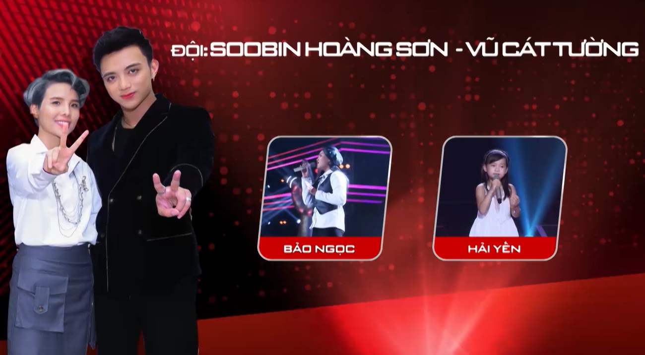 Là 2 HLV tham gia liên tiếp 2 mùa Giọng hát Việt nhí, Soobin Hoàng Sơn và Vũ Cát Tường không chỉ có kinh nghiệm mà càng “lợi hại” hơn khi kết hợp ăn ý trong các màn tranh giành thí sinh. “Ba Bin” và “cô Mèo” không gặp bất cứ khó khăn nào khi đấu khẩu với team Bảo Anh - Khắc Hưng từ chuyện phong cách thời trang đến khả năng biến hóa, phong cách âm nhạc.