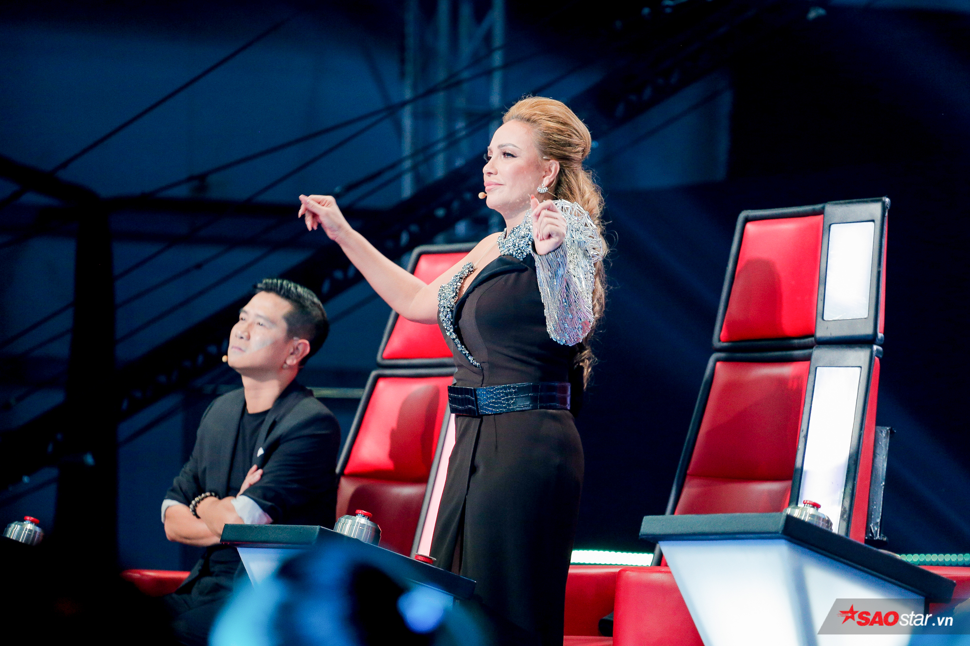 Thanh Hà không ngần ngại sống hết mình cùng các tiết mục: Cổ vũ, cảm nhận, thậm chí là… nhảy múa theo các ca khúc để thể hiện tình cảm mà mình dành cho các thí sinh tiềm năng của mùa The Voice 2019.