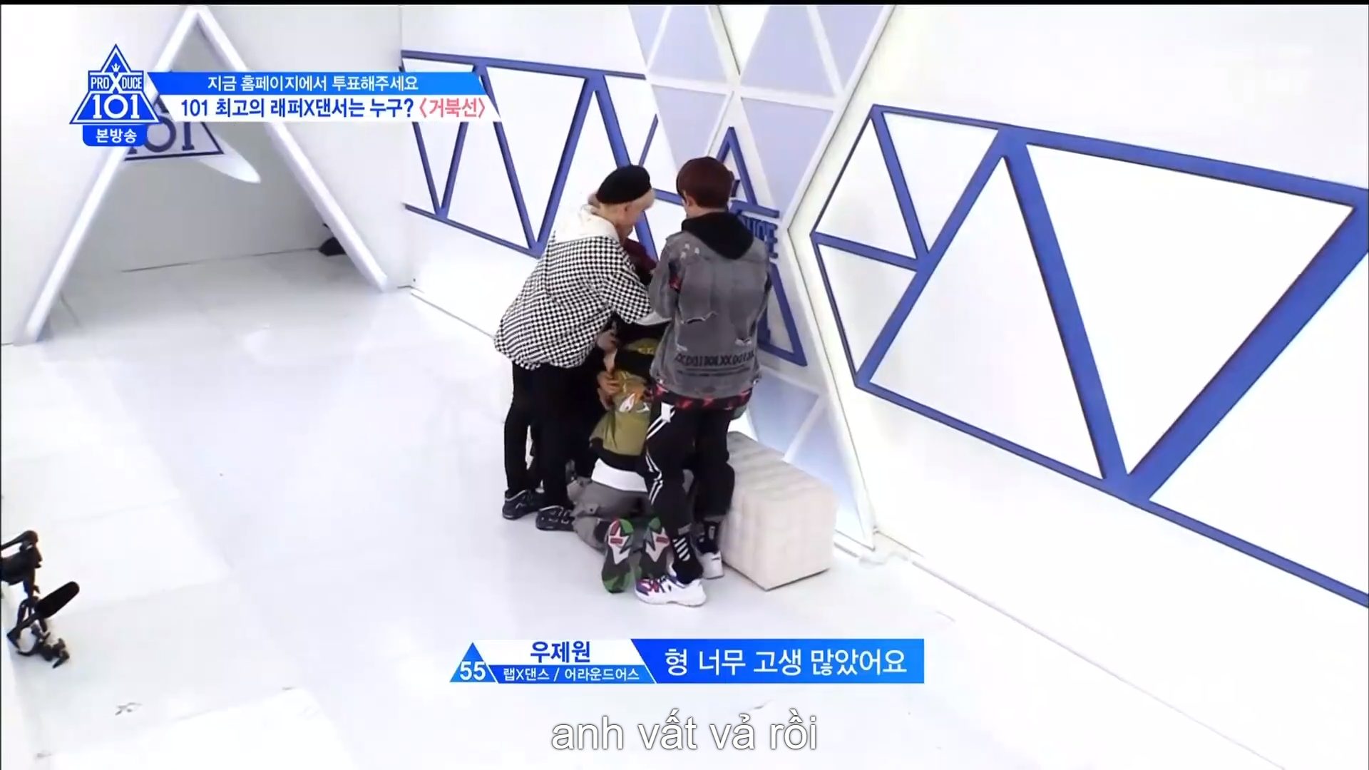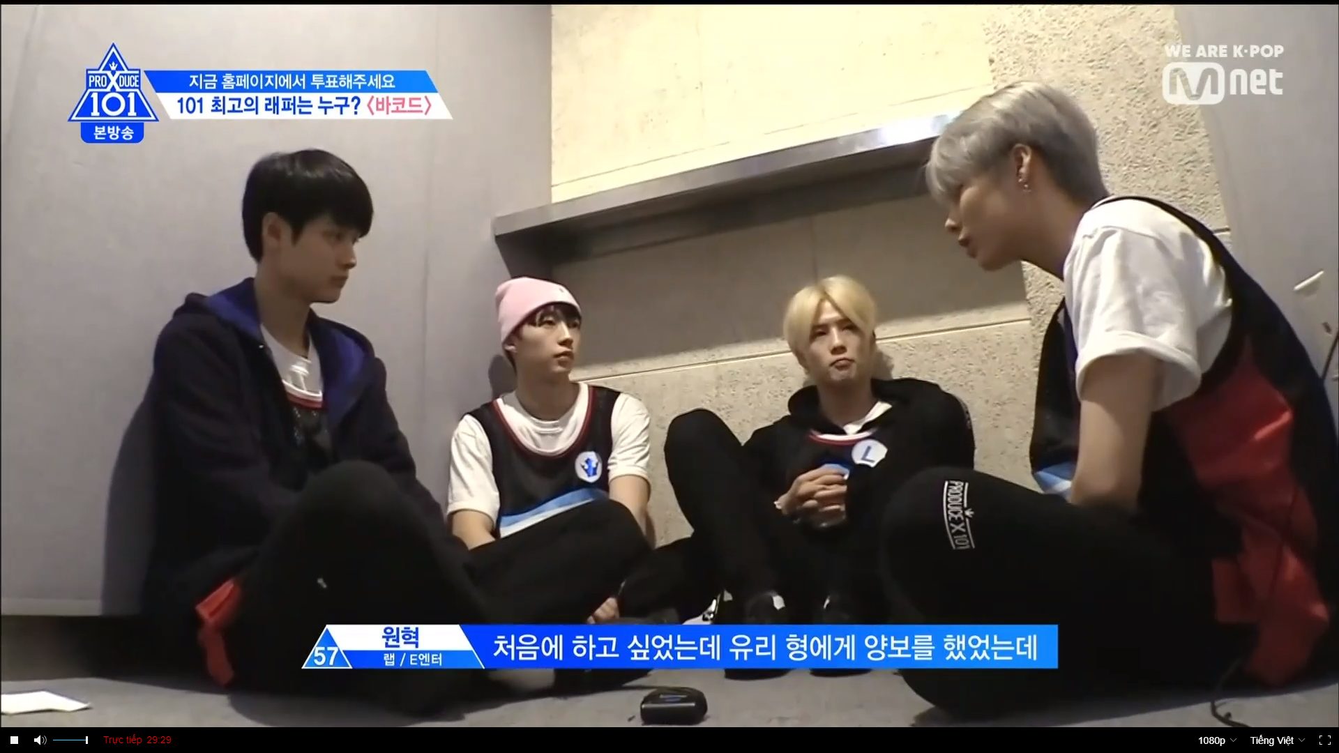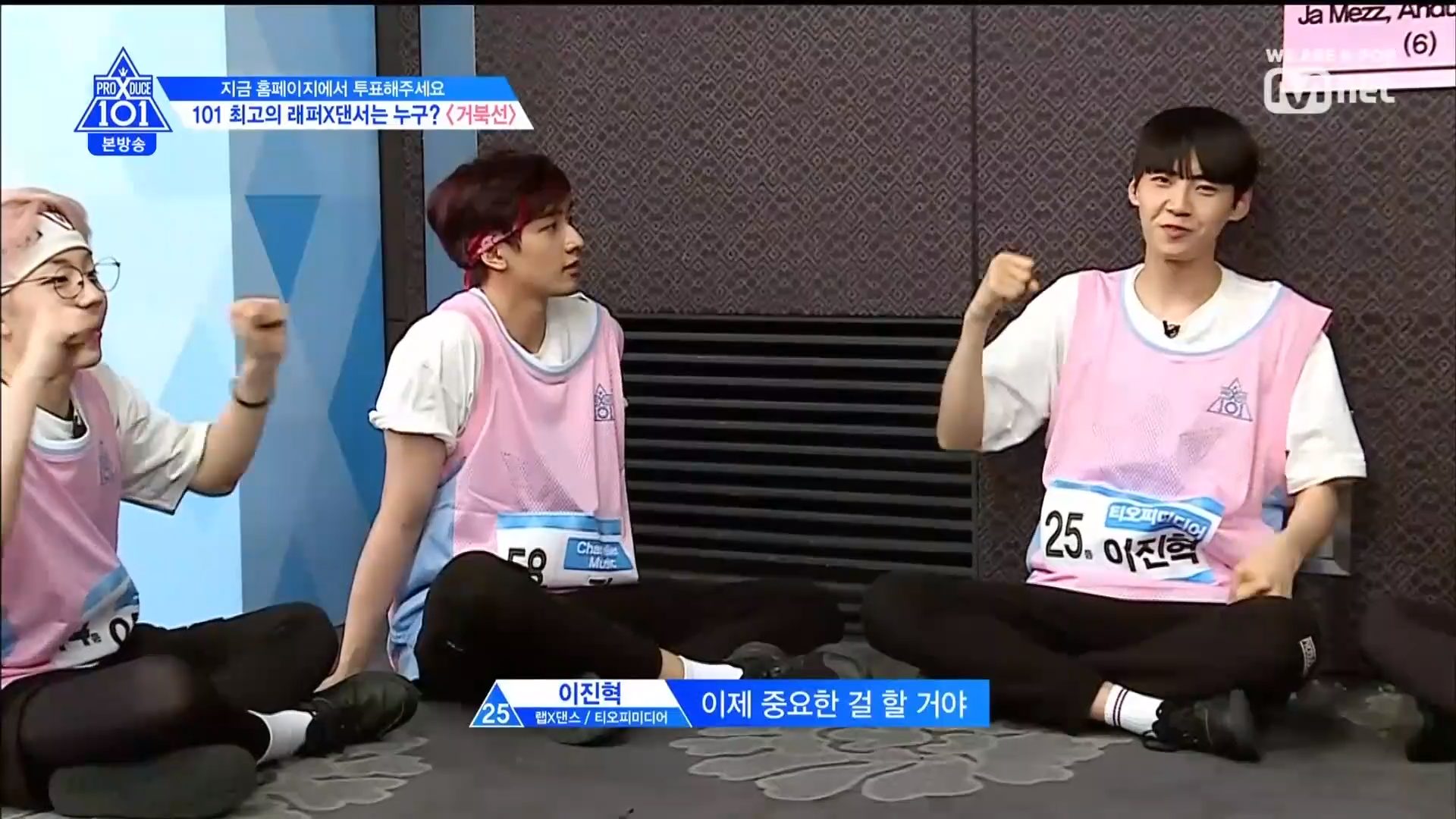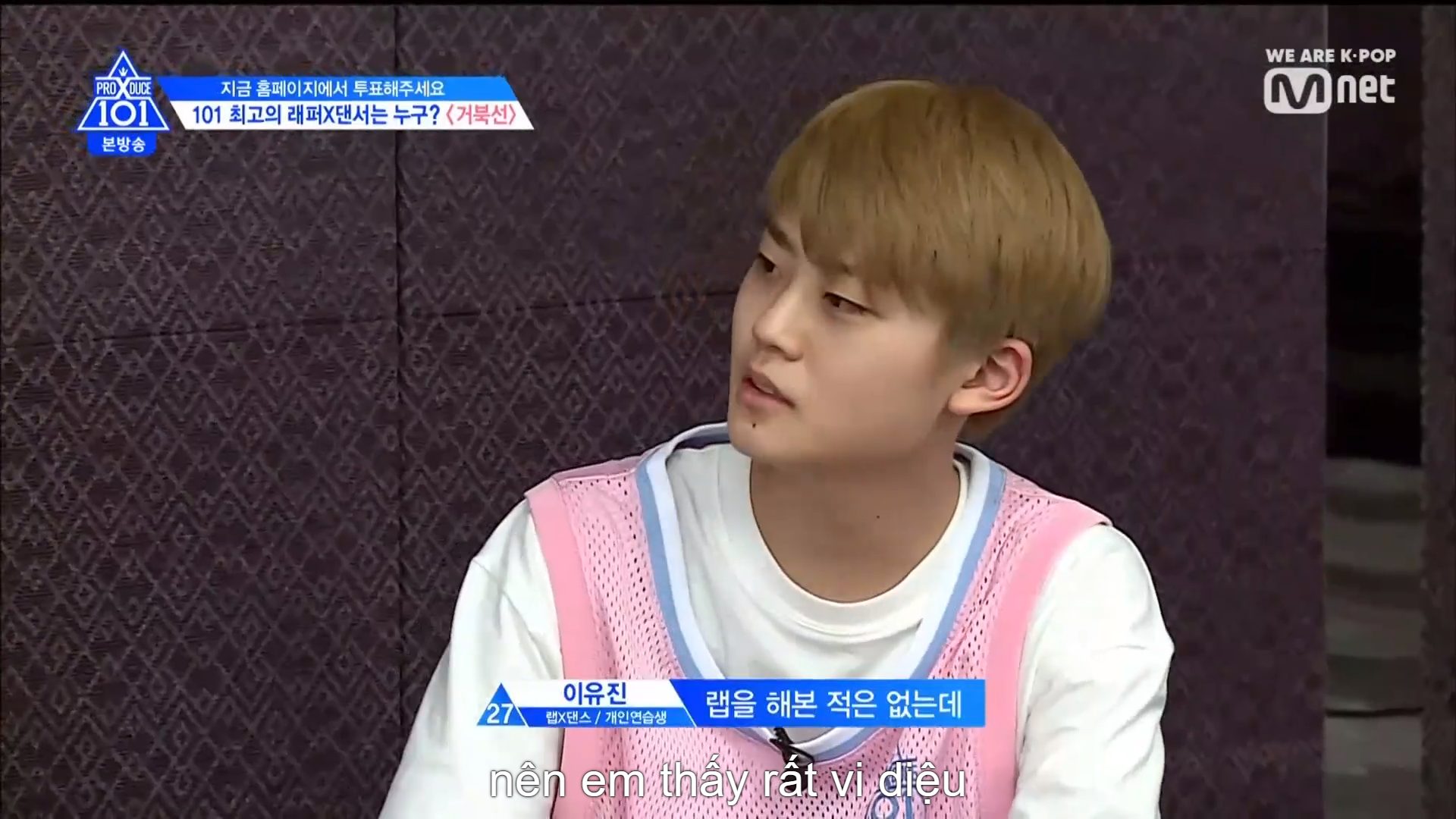 Trong nhóm có nhiều thành viên vẫn khá lạ lẫm với rap như Yoojin hay leader Wonjun. Anh chàng vô cùng lo lắng cho tình hình cũng như tiến độ của team. HLV bất ngờ khi phần tập của nhóm khá ngắn.