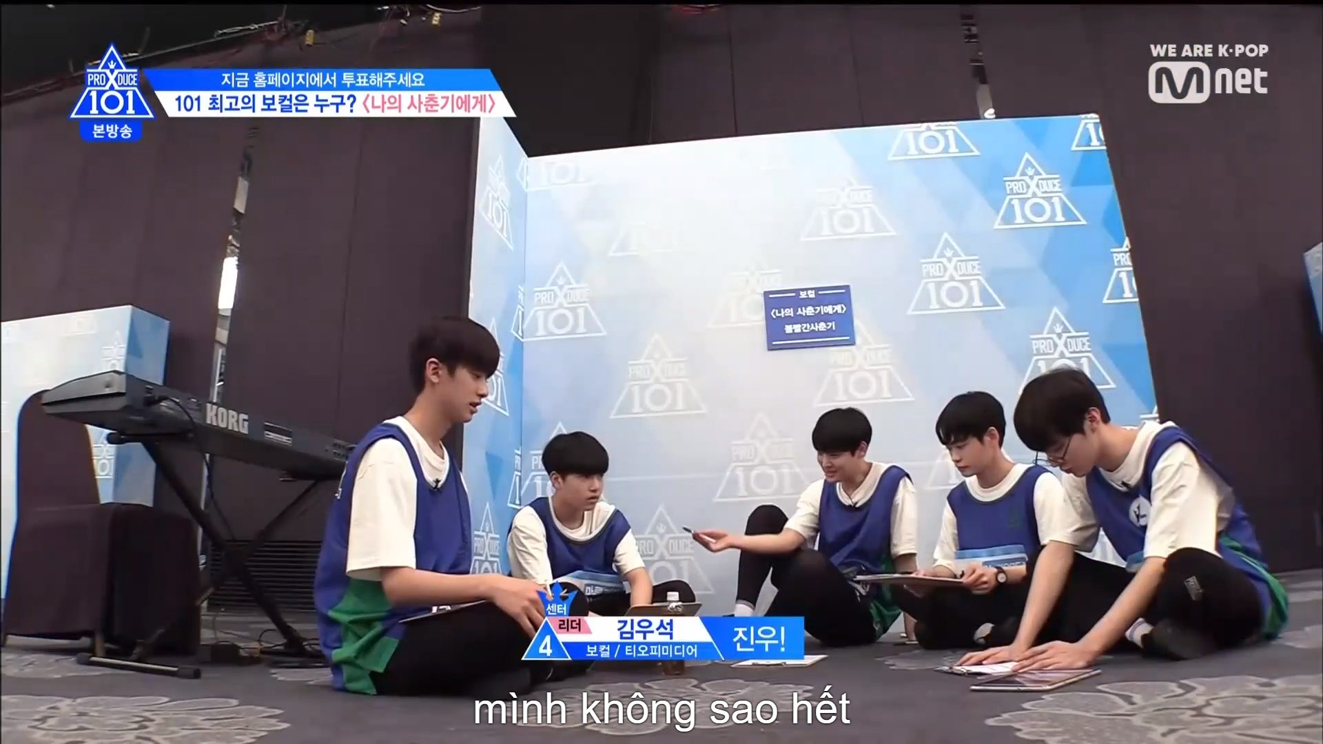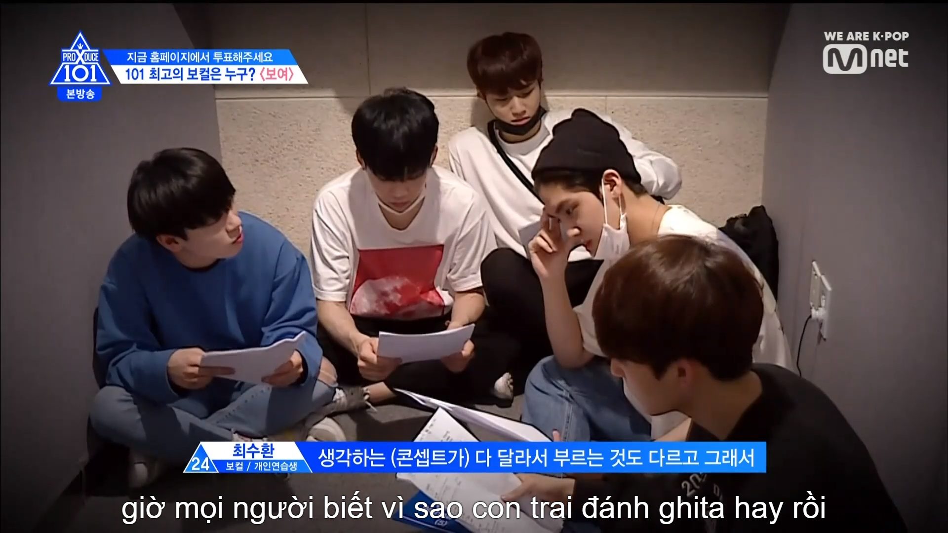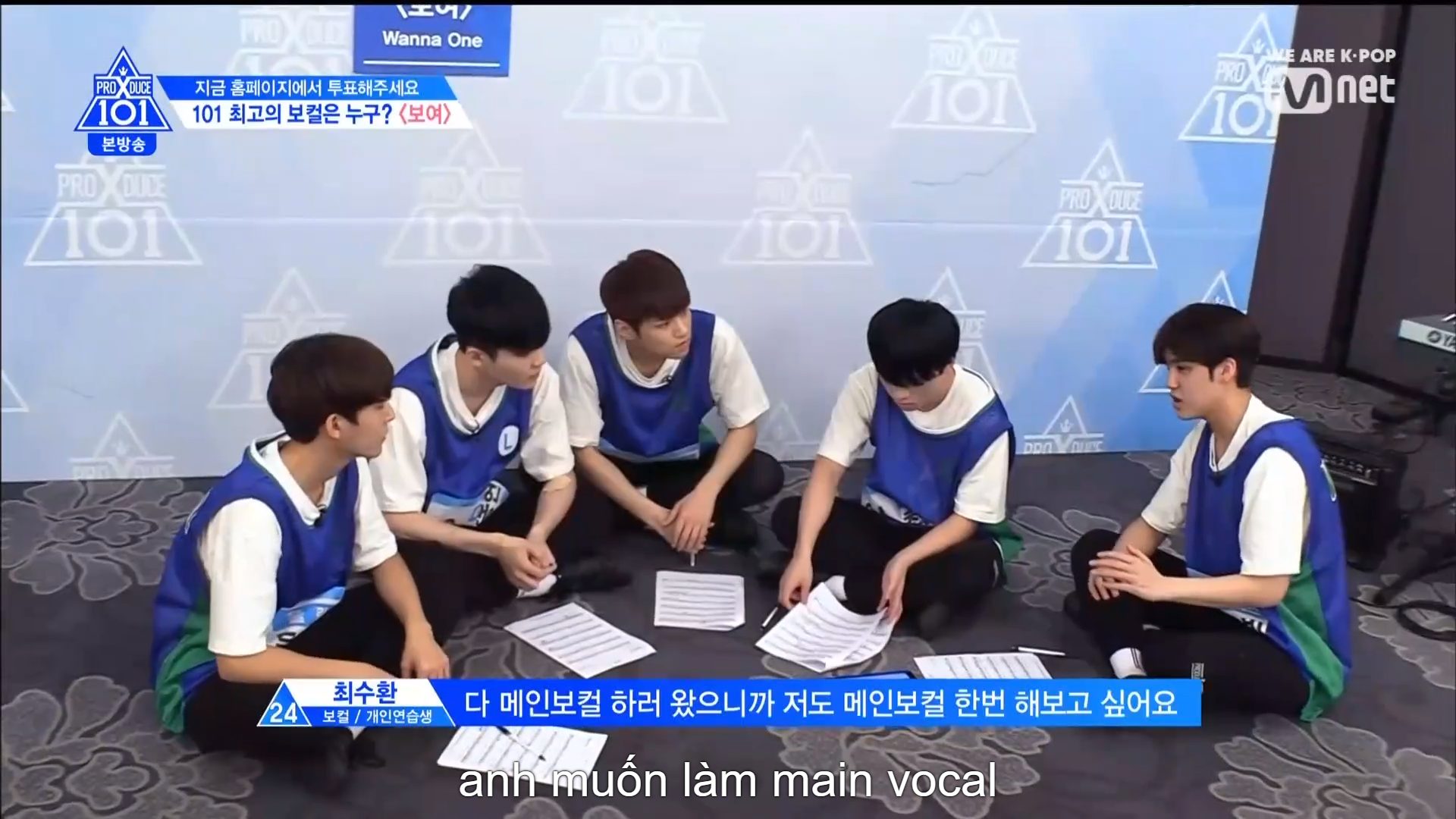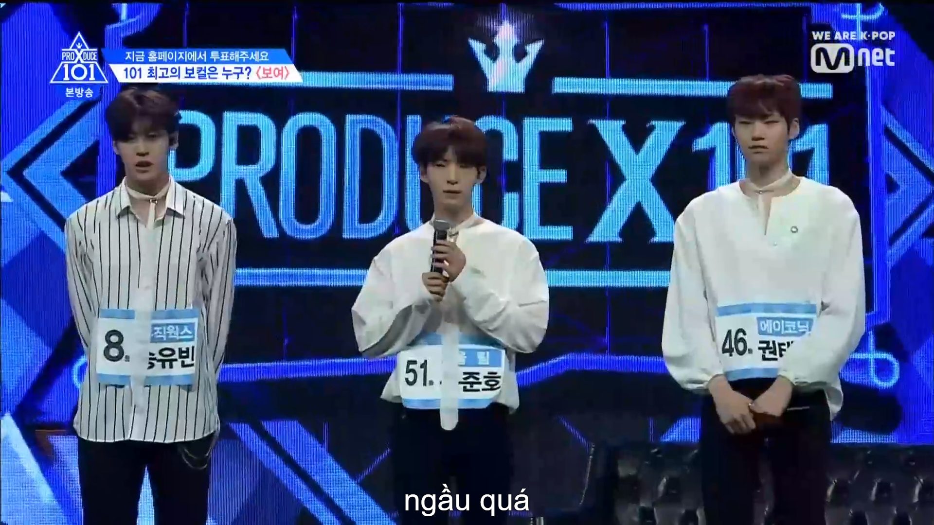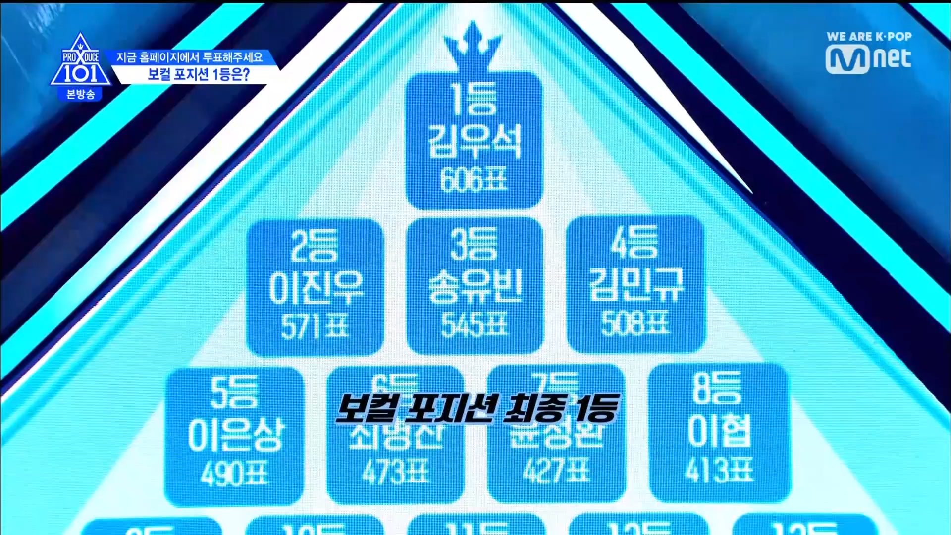 Tiếp theo là vị trí vocal. Các ứng viên sáng giá cho hạng 1 là Seungwoo, Wooseok, Yuvin và Eunsang. Màn soán ngôi liên tục khiến các TTS nín thở. Bố con Wooseok - Jinwoo tạm thời đẩy Yuvin xuống hạng 3. Còn lại Seungwoo sẽ quyết định xem ai sẽ đạt No.1. Kim Wooseok xuất sắc giành hạng 1.