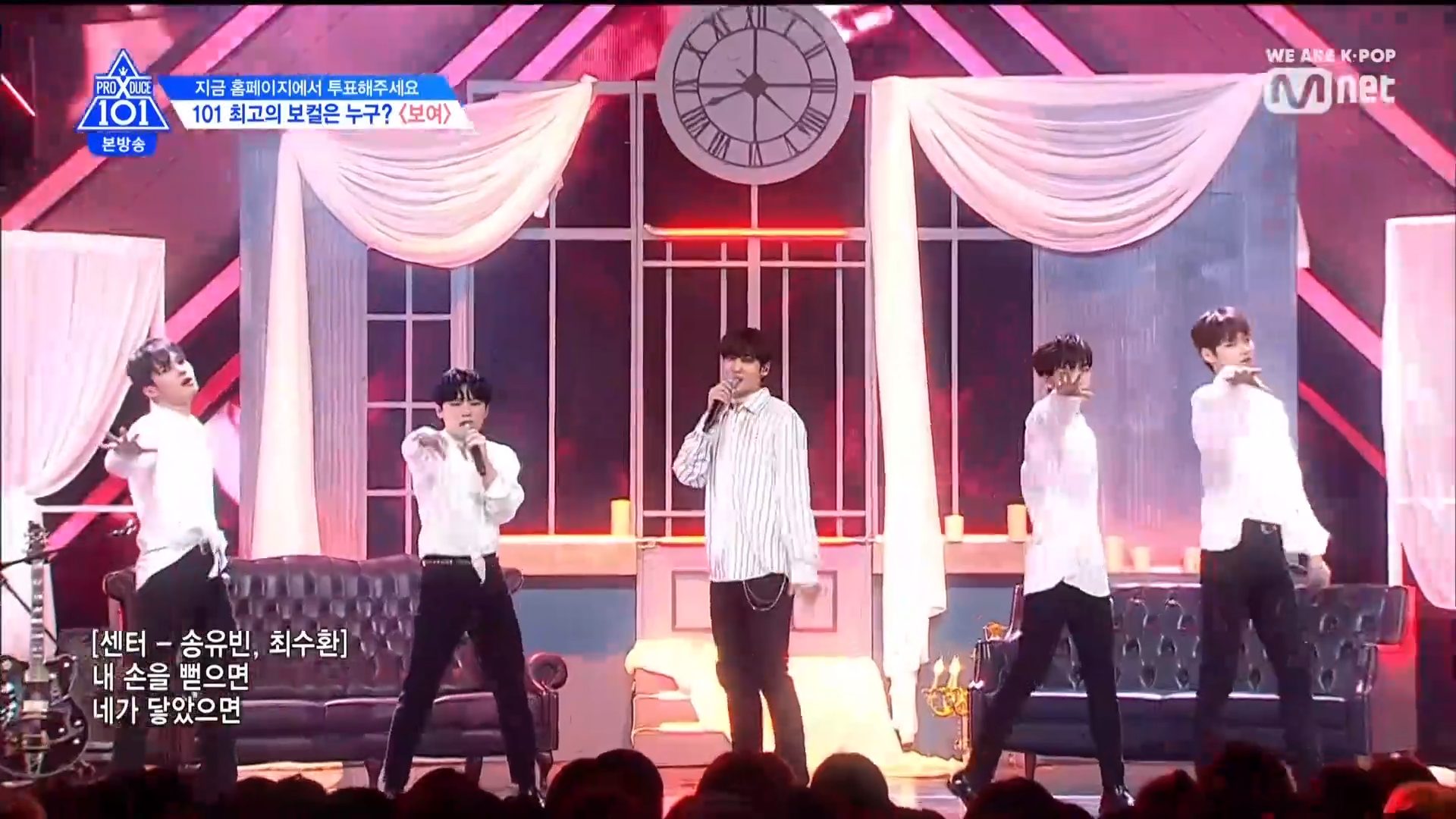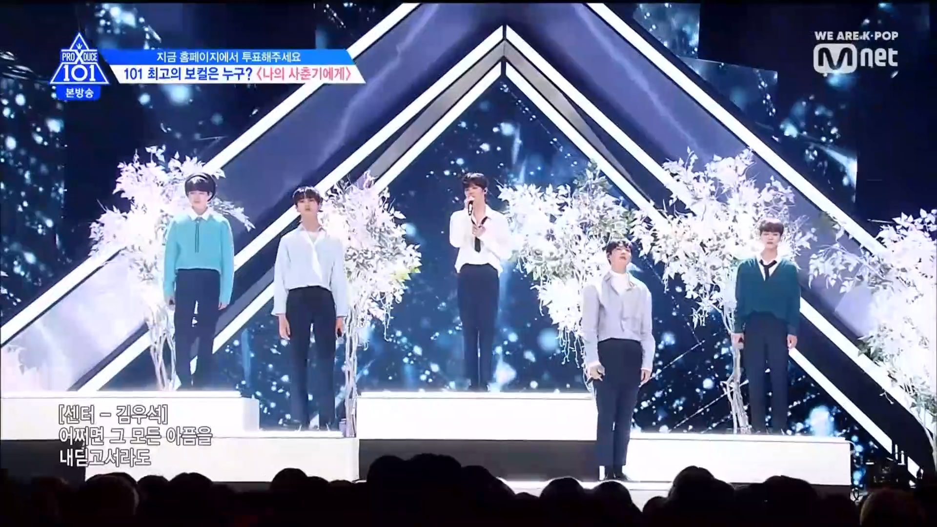 Center Wooseok cho thấy thần thái tiên tử cùng giọng hát không thể ngọt ngào hơn. Byungchan cũng thể hiện vô cùng tốt, không hổ danh là idol 3 năm tuổi nghề. Wooseok thành công lên high note không chút trở ngại. Lee Jinwoo có màn chốt hạ lung linh, kết thúc vòng đánh giá thứ 2 của Produce X 101.