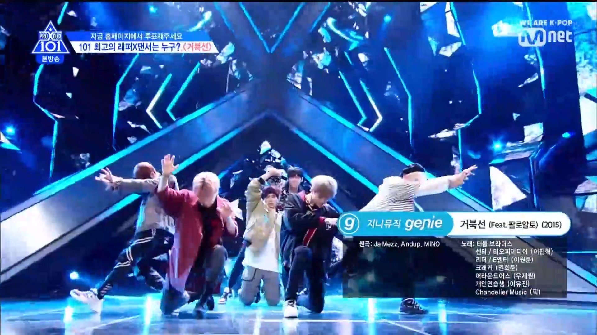 Cuối cùng, bài tủ của Mnet - Turtle ship chính thức lên sóng. Won Jun có màn khoe múi gây chú ý. Sky Castle Yoojin cũng có tiến bộ nhất định. Jinhyuk cho thấy đẳng cấp của 1 center khiến ai cũng há hốc mồm. Turtle Ship đã có 1 màn trình diễn trọn vẹn trong tiếng hò reo của khán giả.