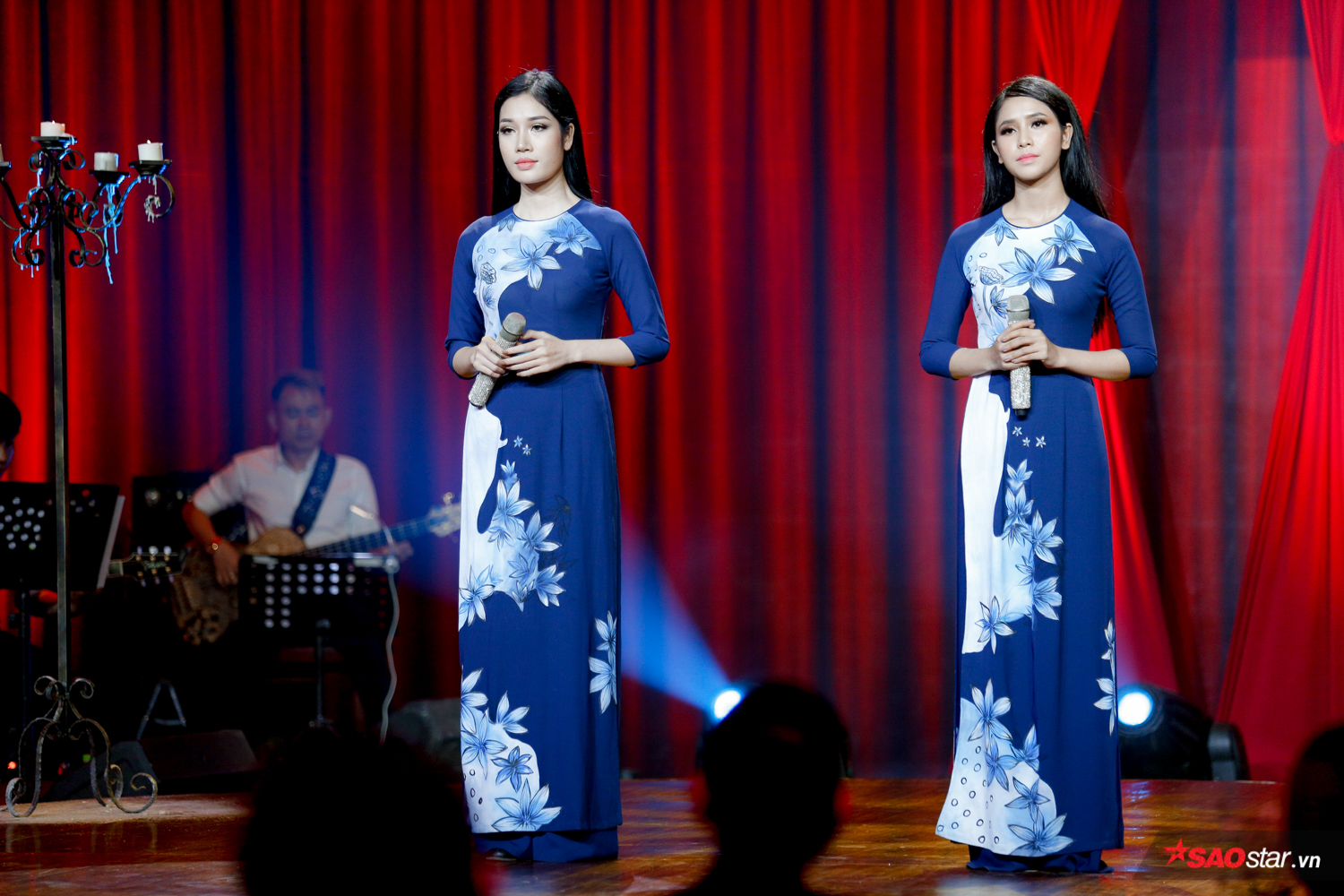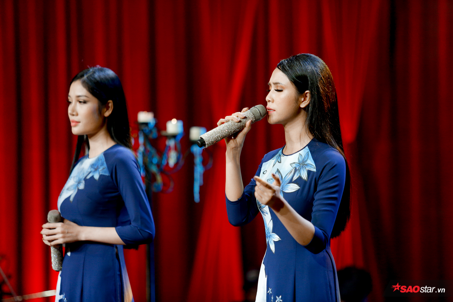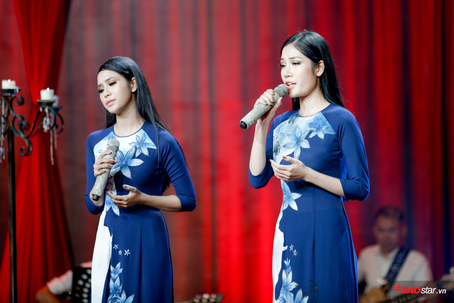 Đặc biệt, cả 2 học trò của Ngọc Sơn - Giang Hồng Ngọc cùng diện áo dài, để tóc dài thẳng và trang điểm giống đến 90% hình ảnh Như Quỳnh trong tiết mục Lênh đênh phận buồn.