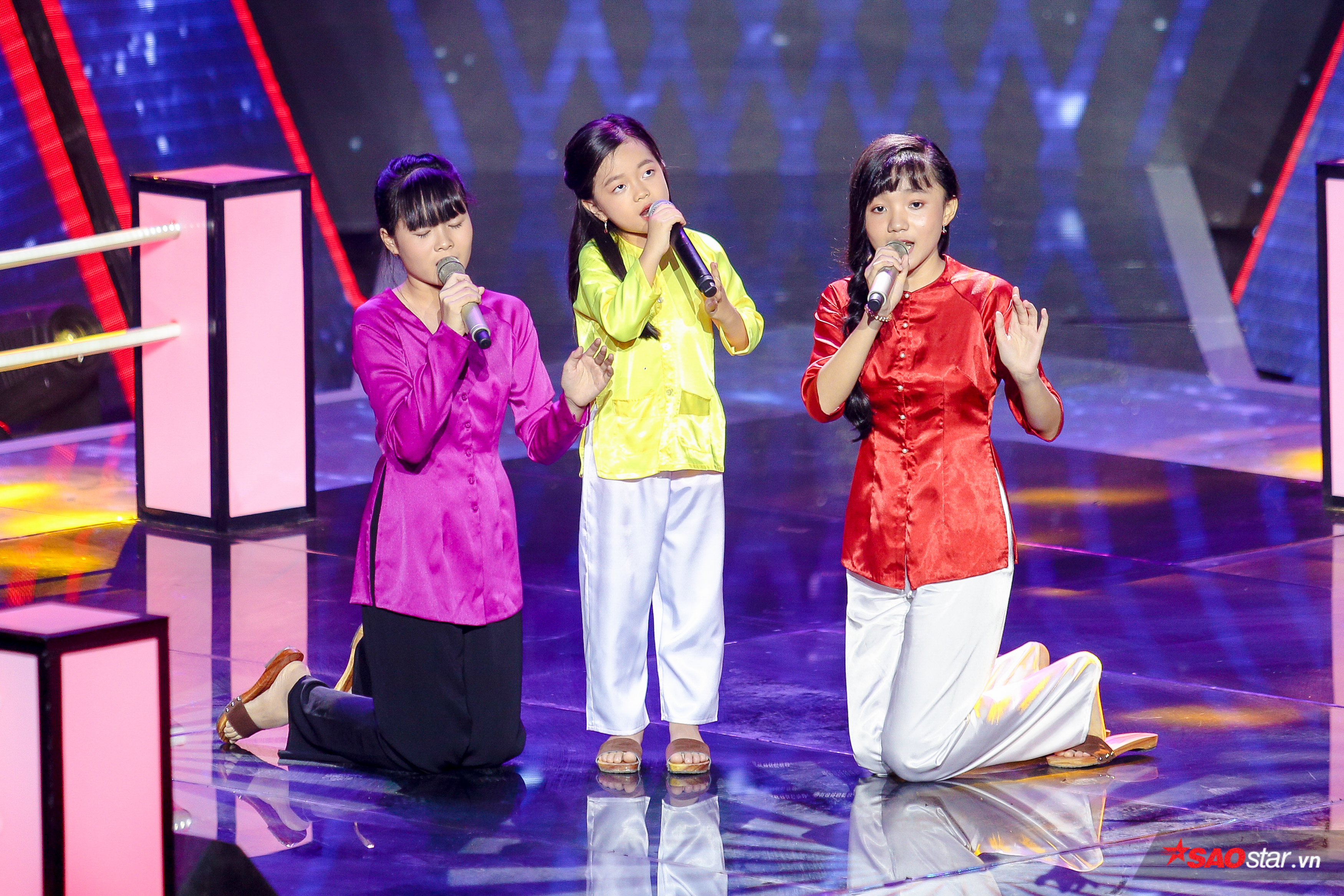 Ở đội HLV Phạm Quỳnh Anh - Dương Khắc Linh, bộ ba tài năng nhí Bình An - Sở Hân - Quỳnh Anh sẽ cùng thể hiện 2 ca khúc đầy sức lay động về tình mẫu tử vừa mang âm hưởng dân ca Nam bộ vừa có nét hiện đại và độ khó trong cách bè phối, chuyển đổi câu hát.